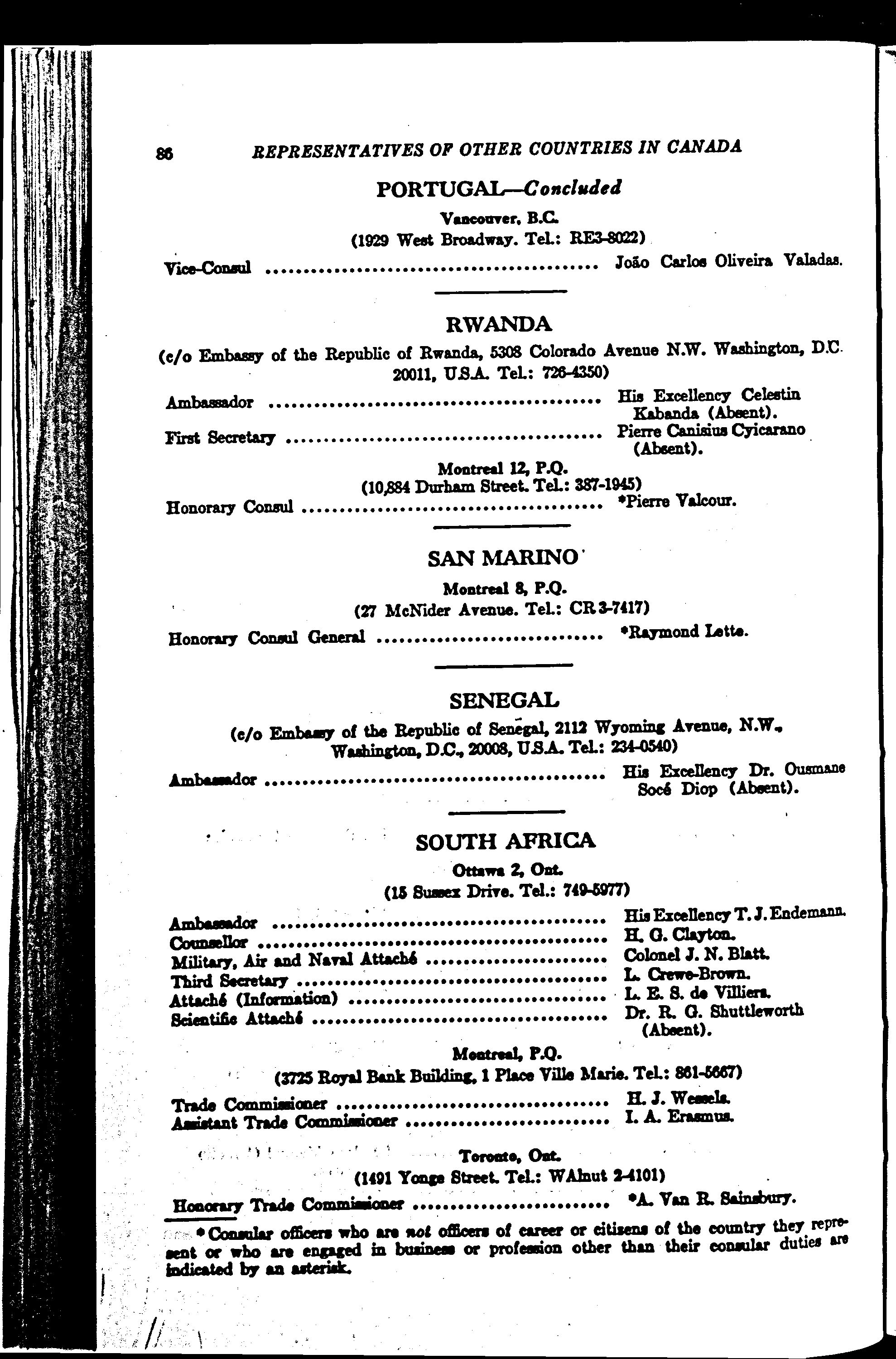 Représentants du Canada à l'extérieur et représentants des autres pays au Canada / Ministère des affaires extérieures. 1966