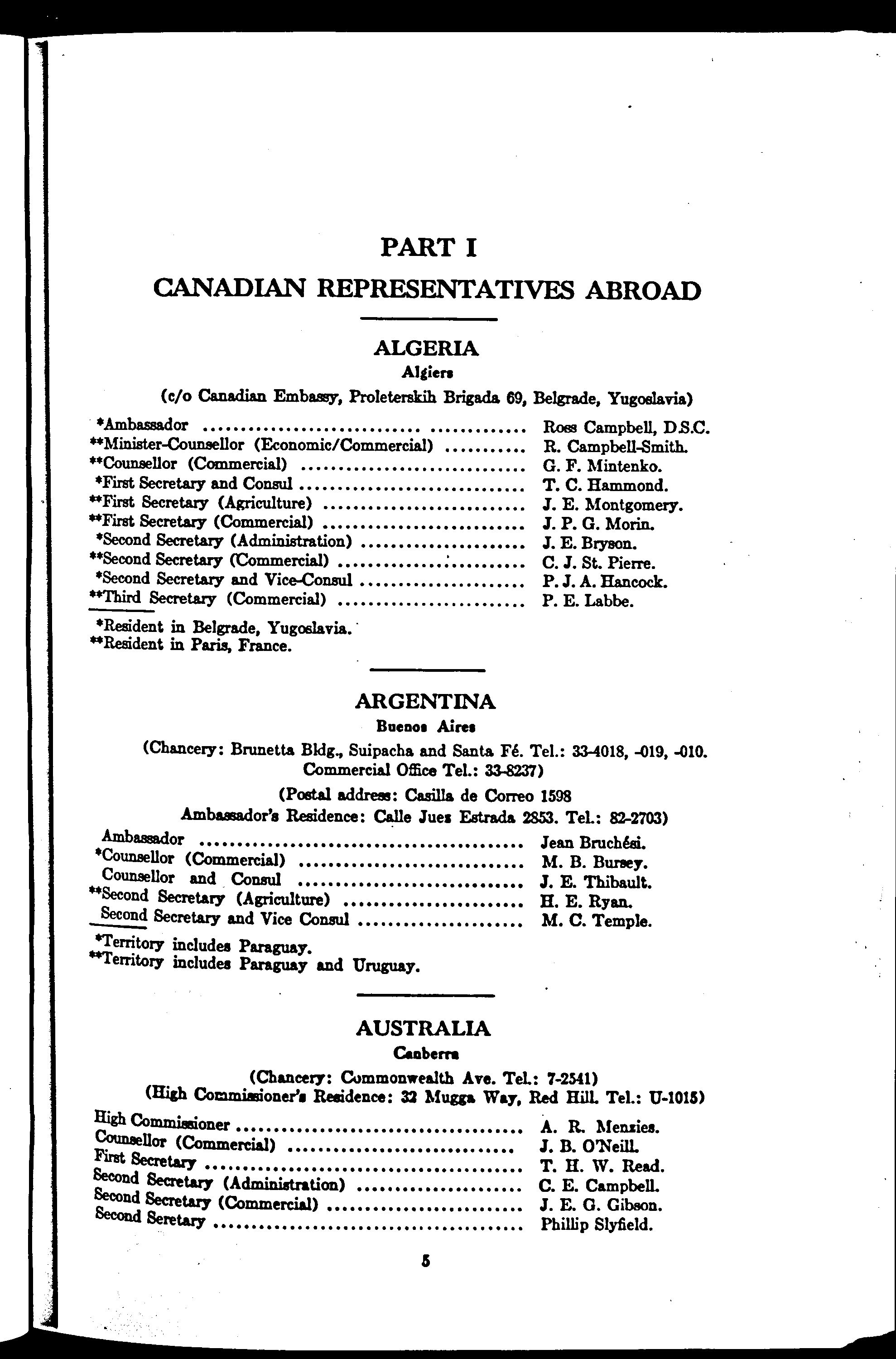 Représentants du Canada à l'extérieur et représentants des autres pays au Canada / Ministère des affaires extérieures. 1966