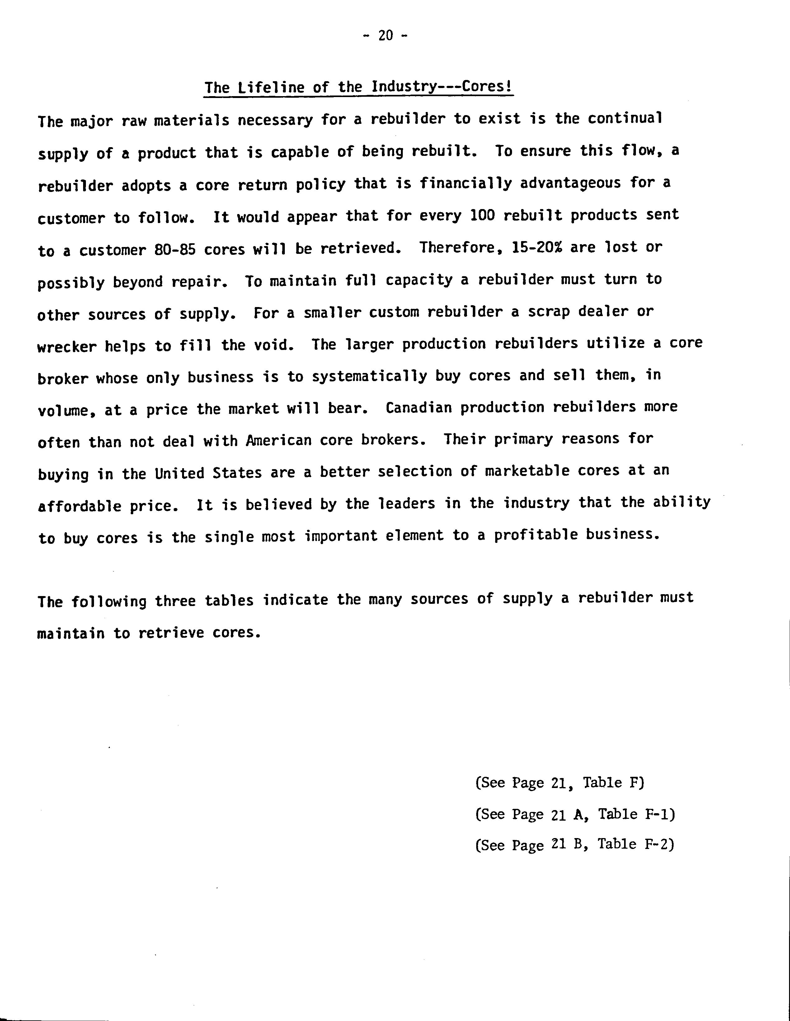 Also published in French under title: Enquête sur le secteur secondaire des ateliers de révision de pièces automobiles.