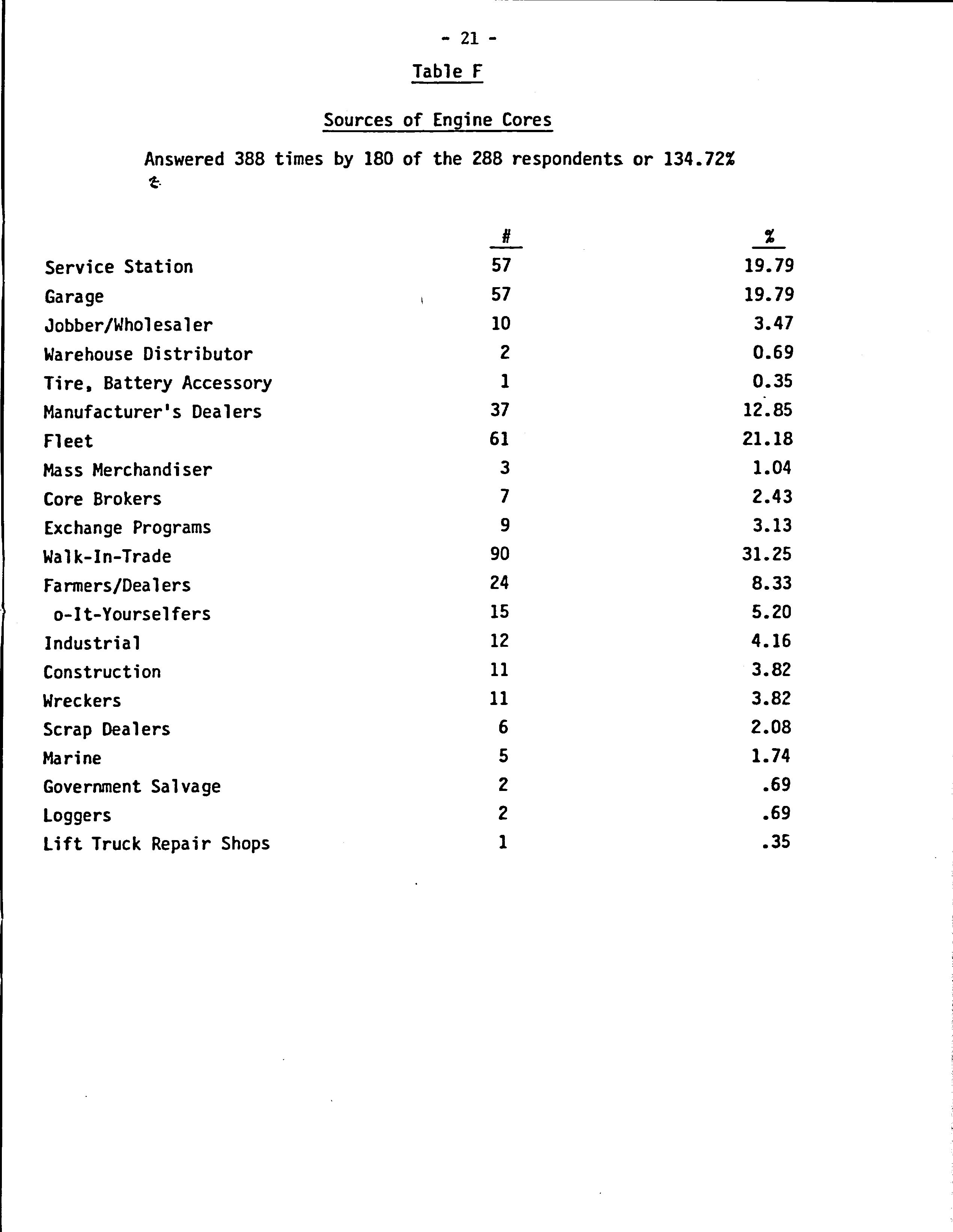 Also published in French under title: Enquête sur le secteur secondaire des ateliers de révision de pièces automobiles.