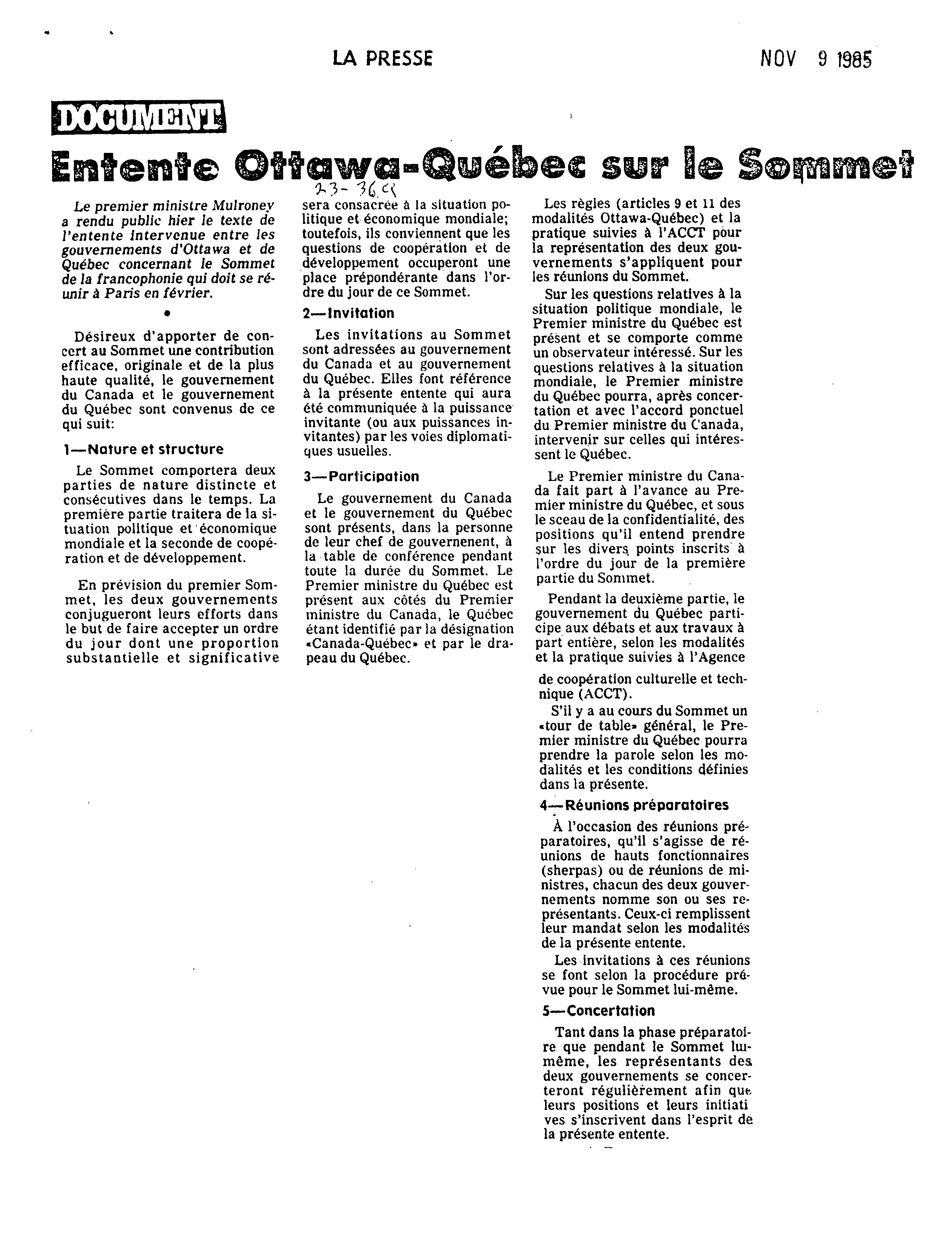 Le Sommet francophone Paris du 17 au 19 février 1986 = The Francophone Summit Paris February 17 to 19, 1986. : Press review (Feb. 17/19 1986)