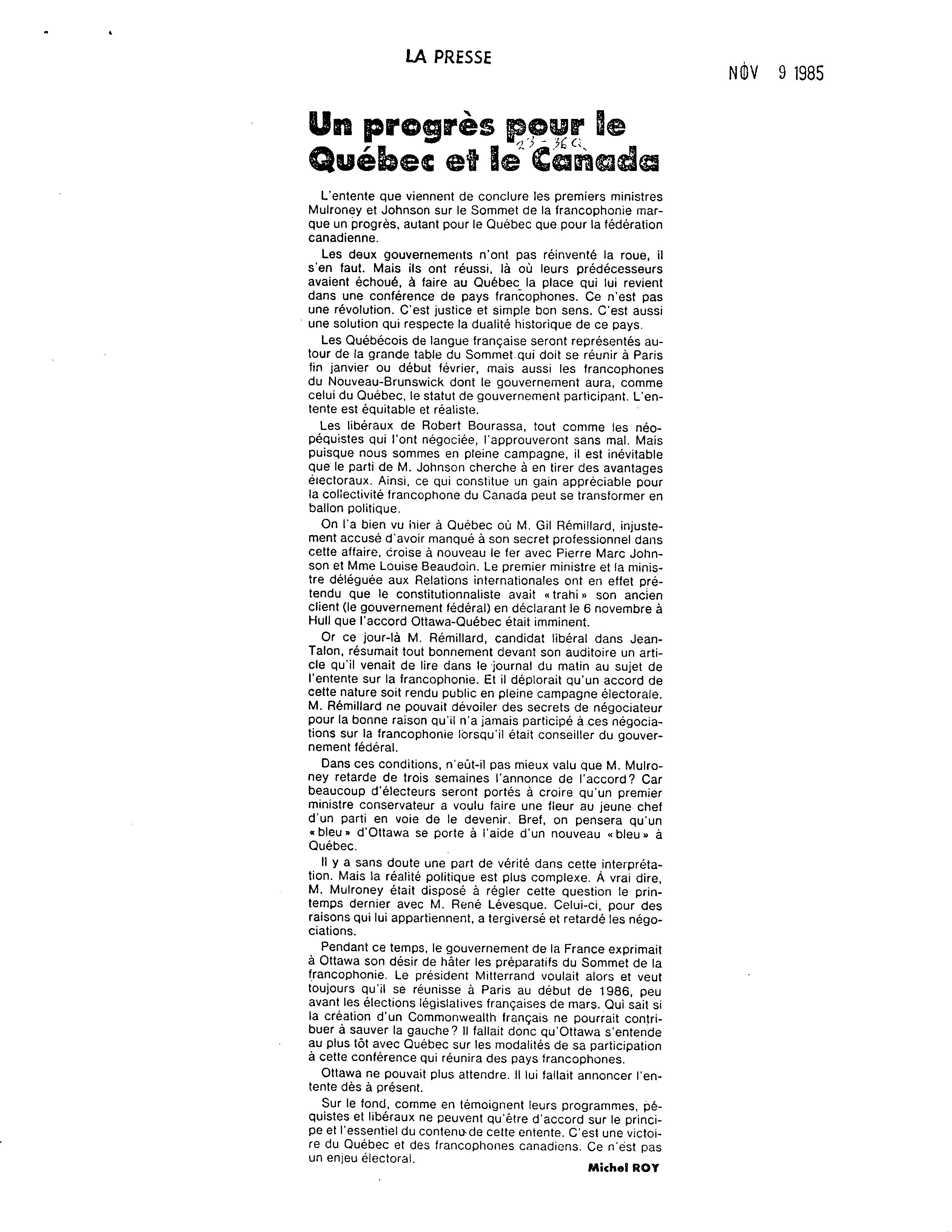 - Le Sommet francophone Paris du 17 au 19 février 1986 = The Francophone Summit Paris February 17 to 19, 1986. Press review (Feb. 17/19 1986)