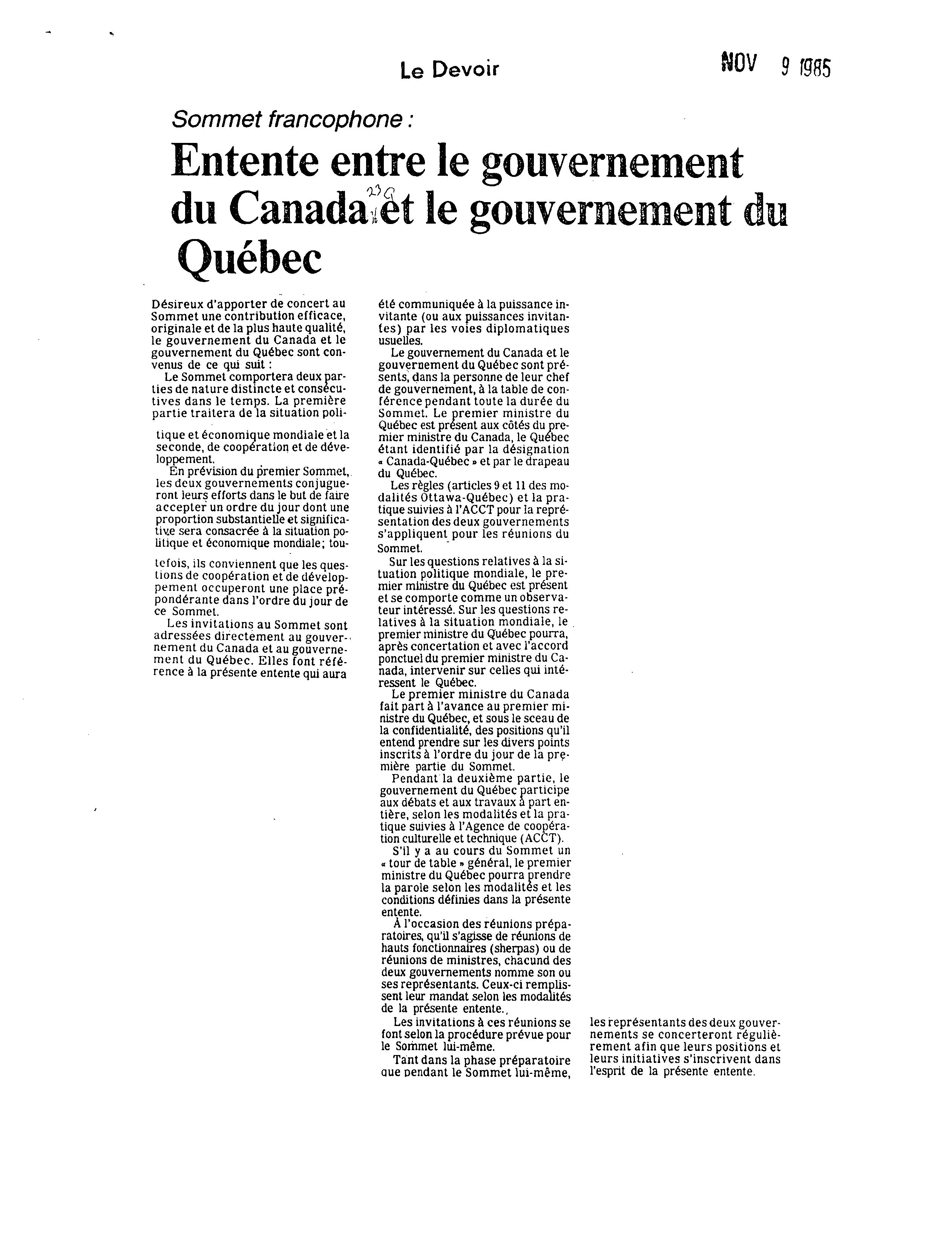 - Le Sommet francophone Paris du 17 au 19 février 1986 = The Francophone Summit Paris February 17 to 19, 1986. Press review (Feb. 17/19 1986)