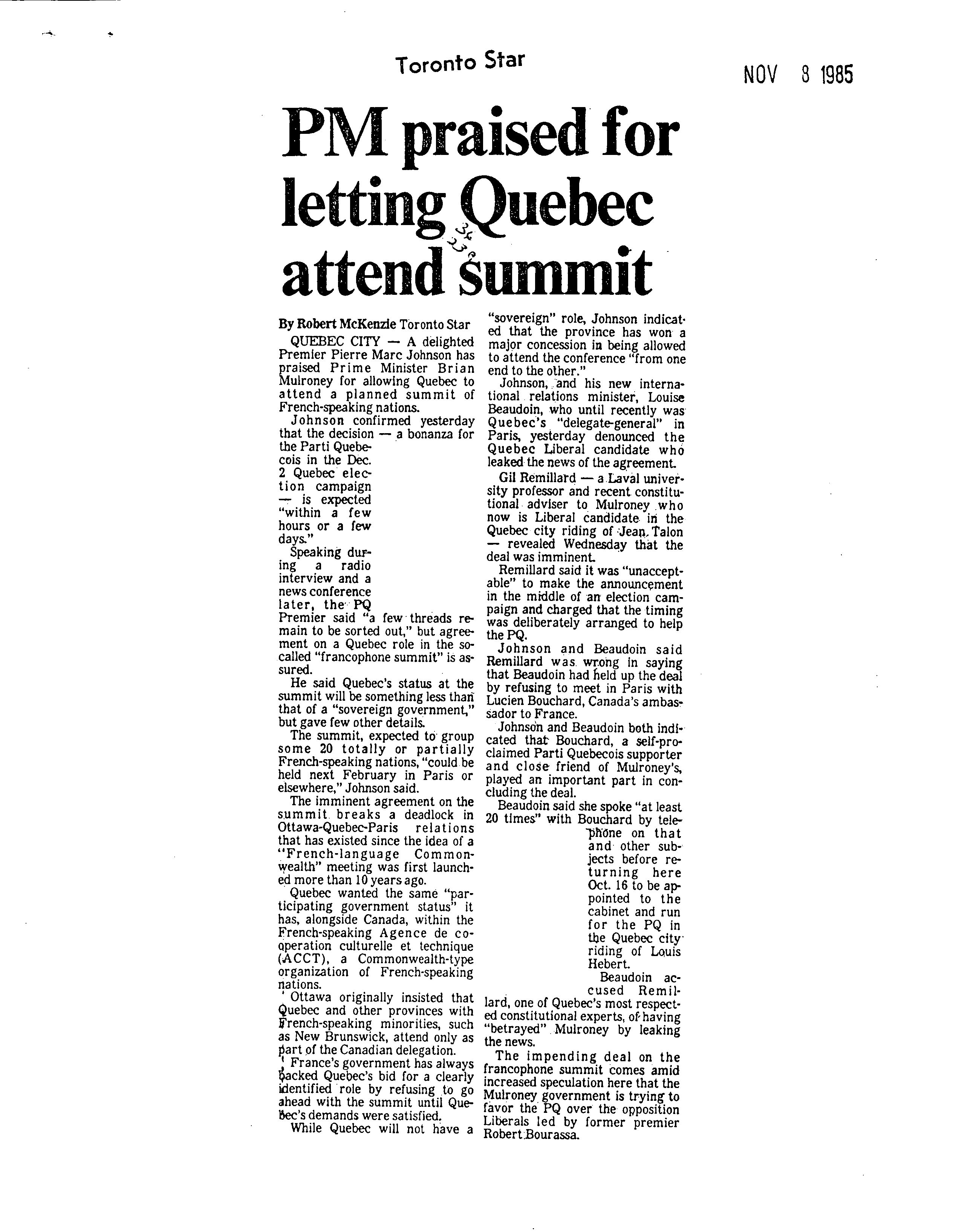 - Le Sommet francophone Paris du 17 au 19 février 1986 = The Francophone Summit Paris February 17 to 19, 1986. Press review (Feb. 17/19 1986)