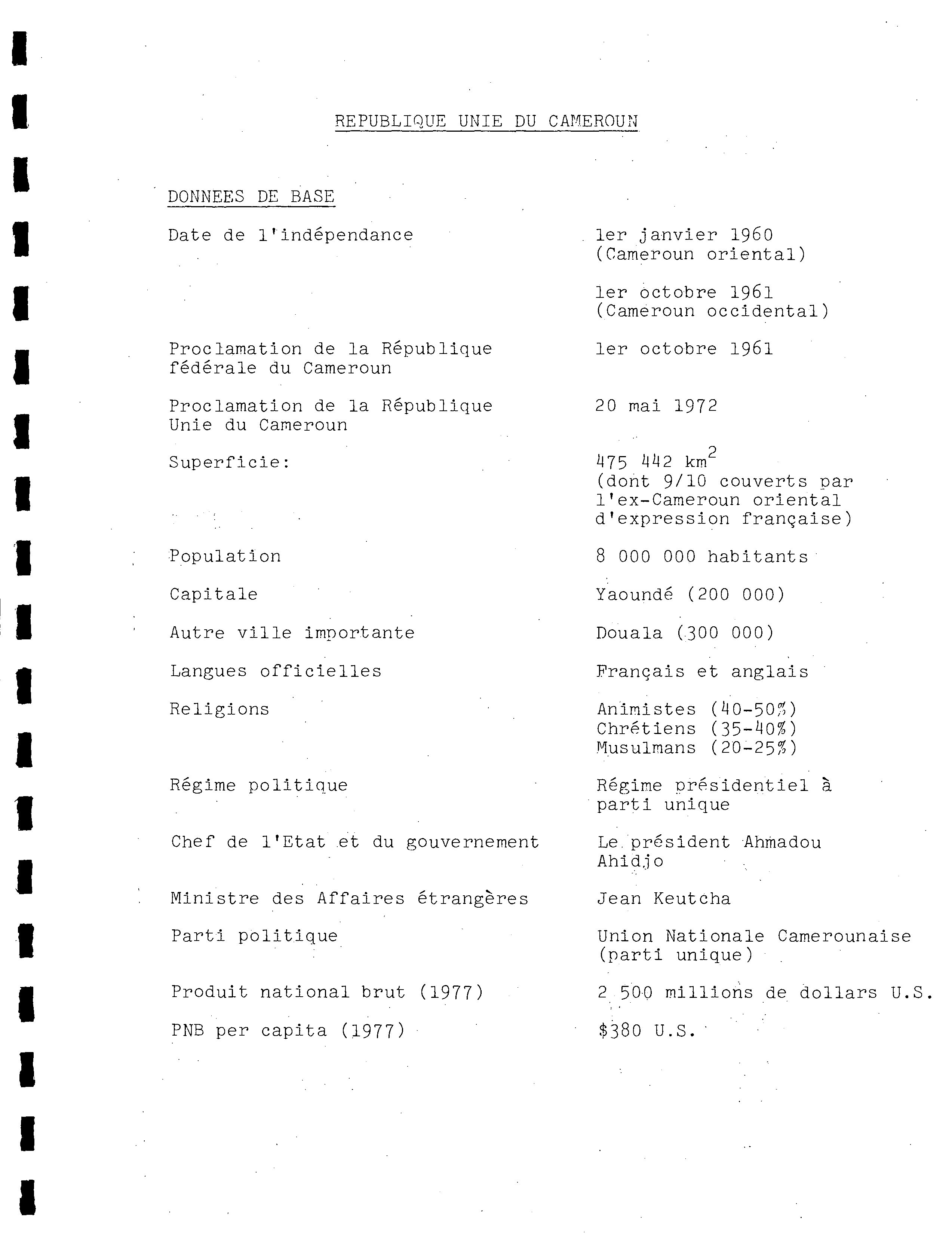 Visite au Cameroun, en Tanzanie et au Kenya du très honorable Joe Clark, Premier ministre du Canada juillet-août 1979.