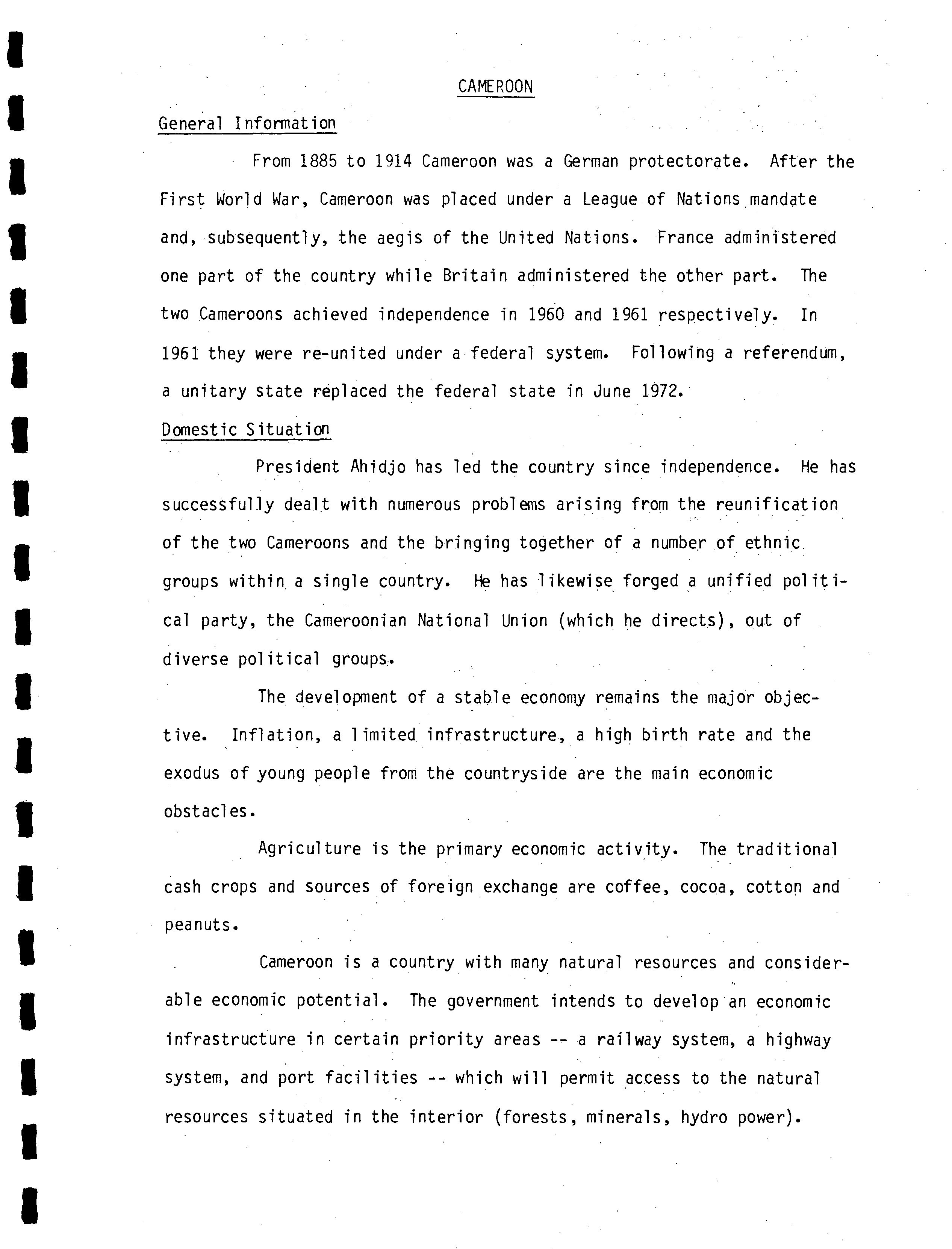 Visit to Cameroon, Tanzania and Kenya of the Right Honourable Joe Clark, Prime Minister of Canada July-August 1979 = Visite au Cameroun, en Tanzanie et au Kenya du très honorable Joe Clark, Premier ministre du Canada juillet-août 1979 - Adresse bibliographique