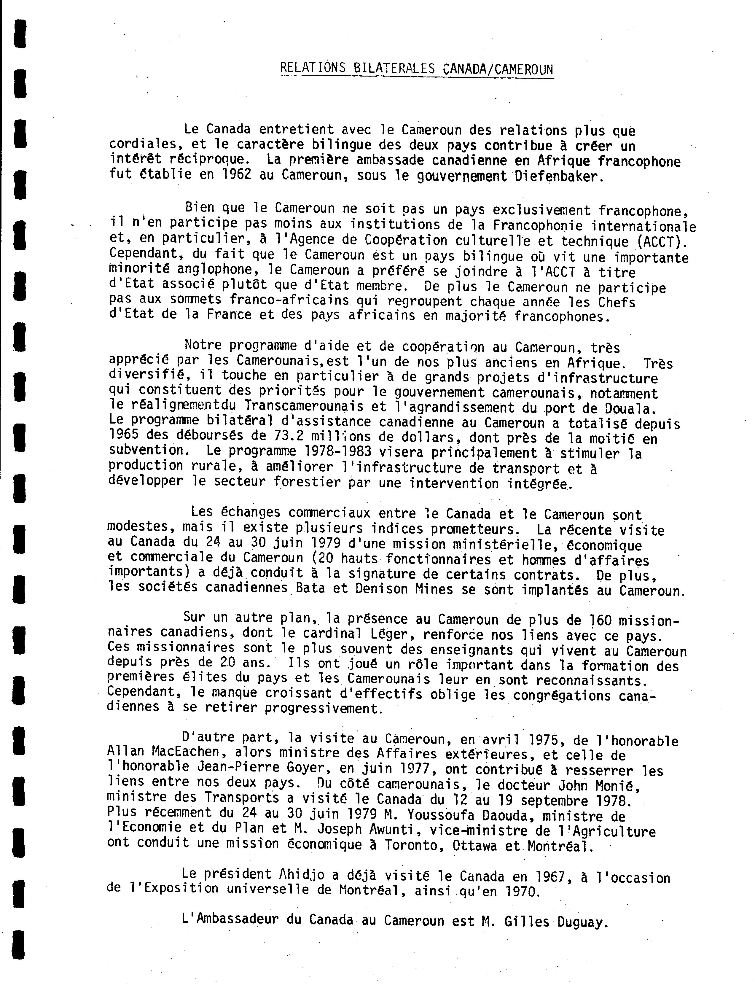 Visit to Cameroon, Tanzania and Kenya of the Right Honourable Joe Clark, Prime Minister of Canada July-August 1979 = Visite au Cameroun, en Tanzanie et au Kenya du très honorable Joe Clark, Premier ministre du Canada juillet-août 1979 - Published