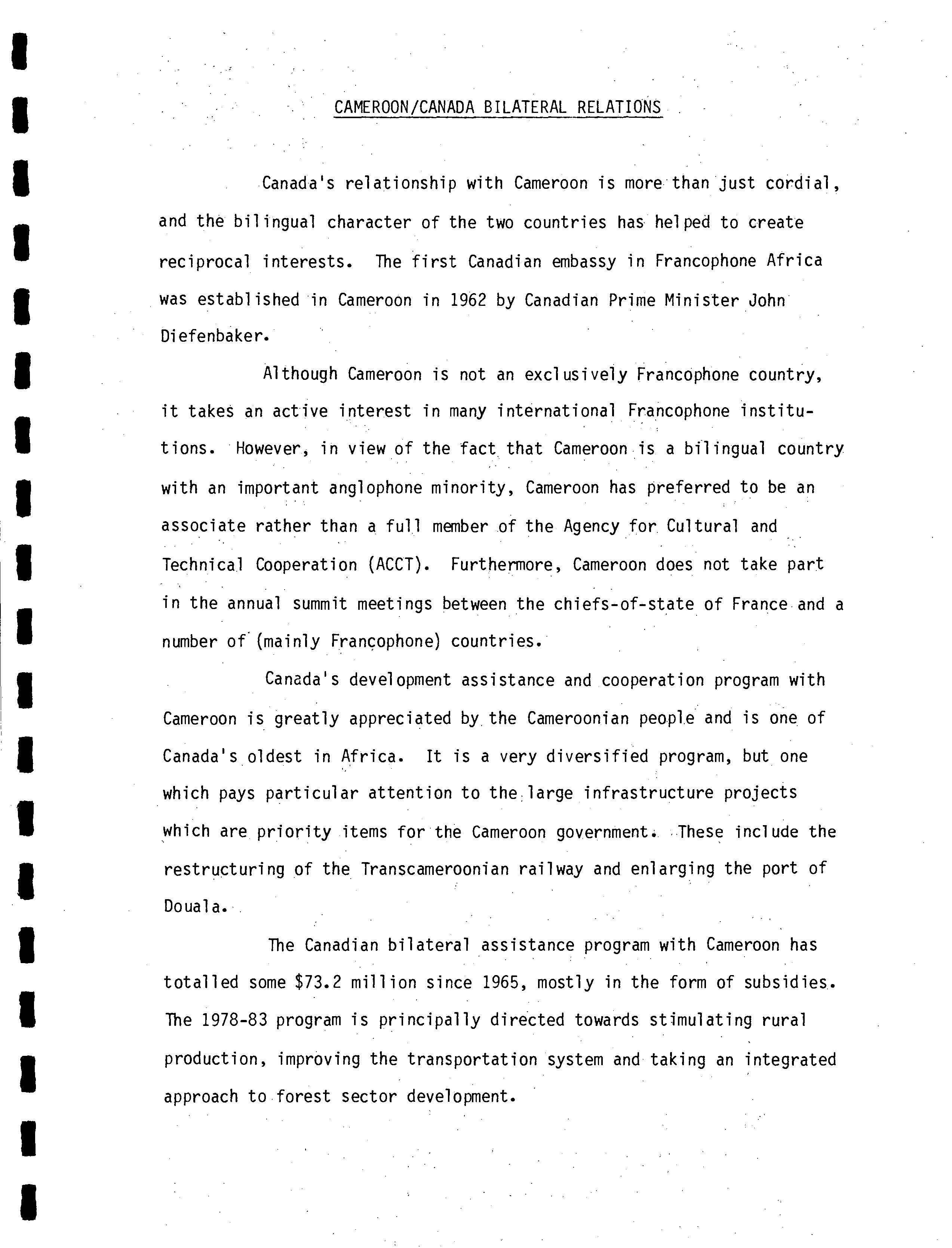 Visit to Cameroon, Tanzania and Kenya of the Right Honourable Joe Clark, Prime Minister of Canada July-August 1979 = Visite au Cameroun, en Tanzanie et au Kenya du très honorable Joe Clark, Premier ministre du Canada juillet-août 1979