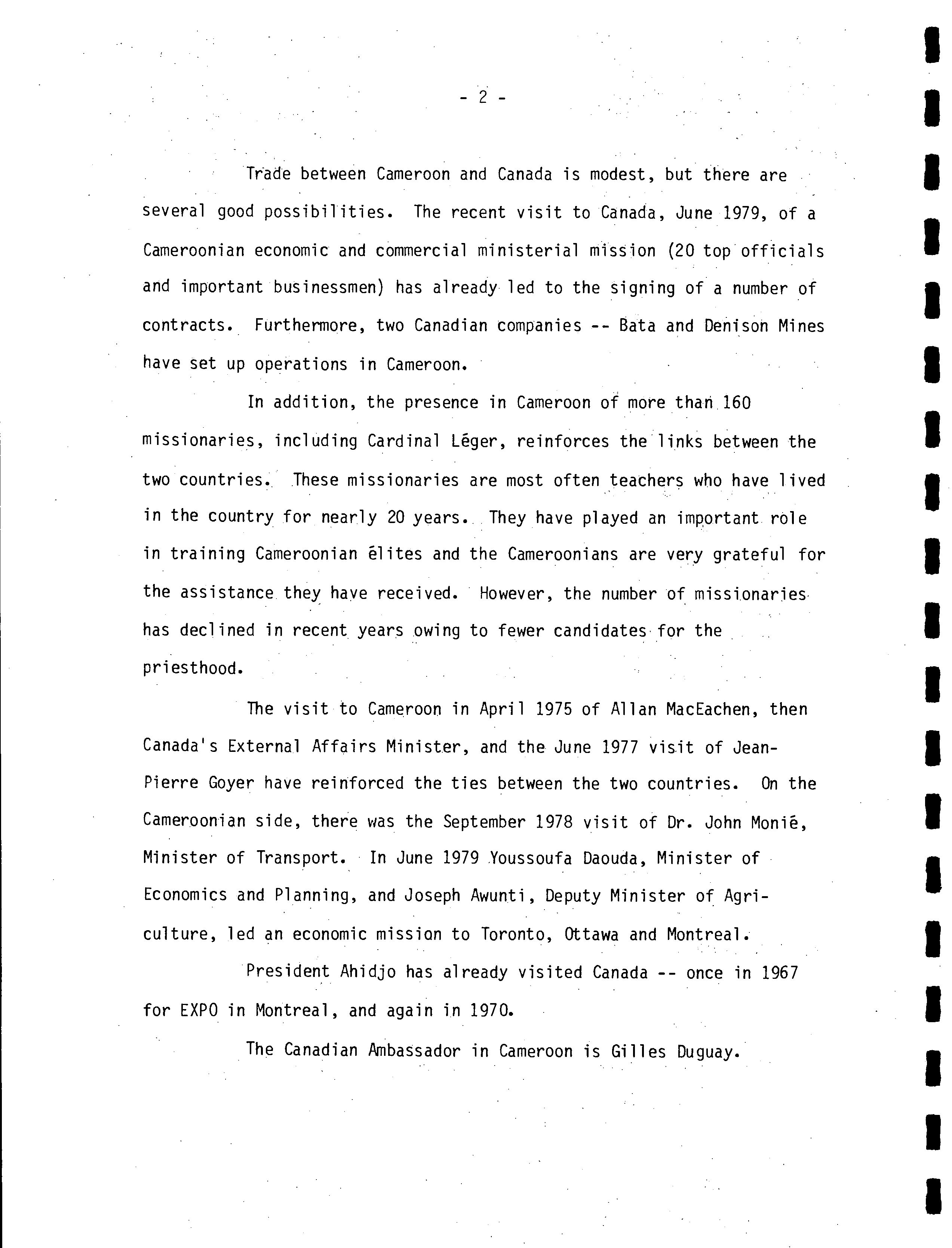 Visit to Cameroon, Tanzania and Kenya of the Right Honourable Joe Clark, Prime Minister of Canada July-August 1979 = Visite au Cameroun, en Tanzanie et au Kenya du très honorable Joe Clark, Premier ministre du Canada juillet-août 1979