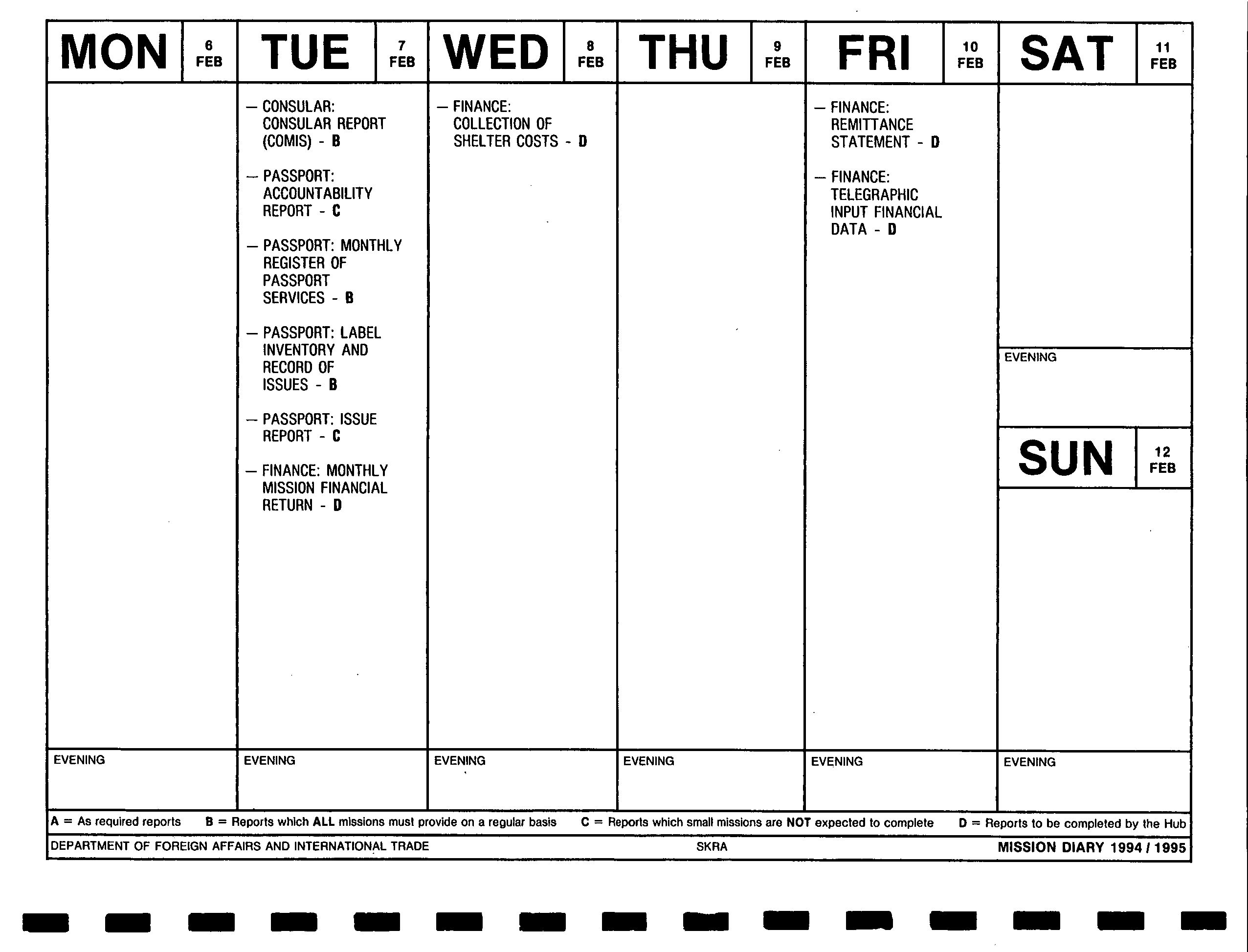 Agenda de la mission / Affaires extérieures et commerce extérieur Canada. : 1994/95