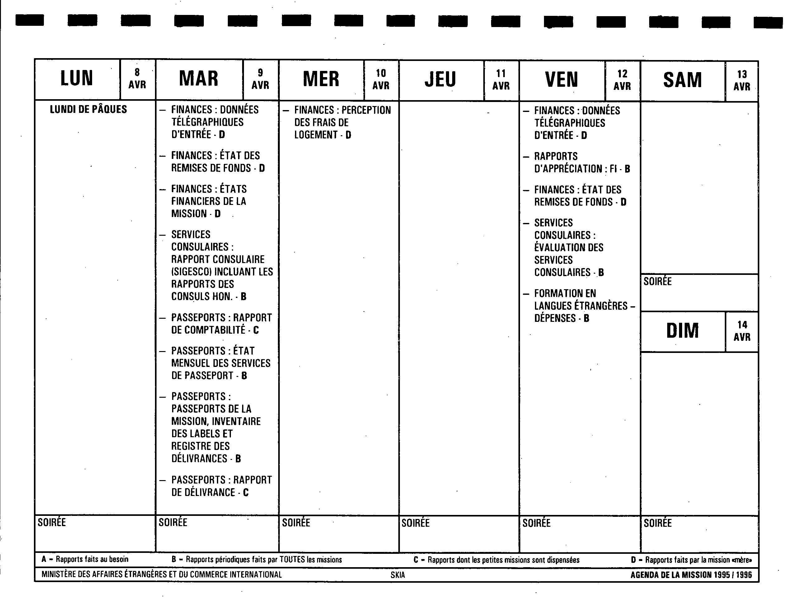 Agenda de la mission / Affaires extérieures et commerce extérieur Canada. : 1995/96