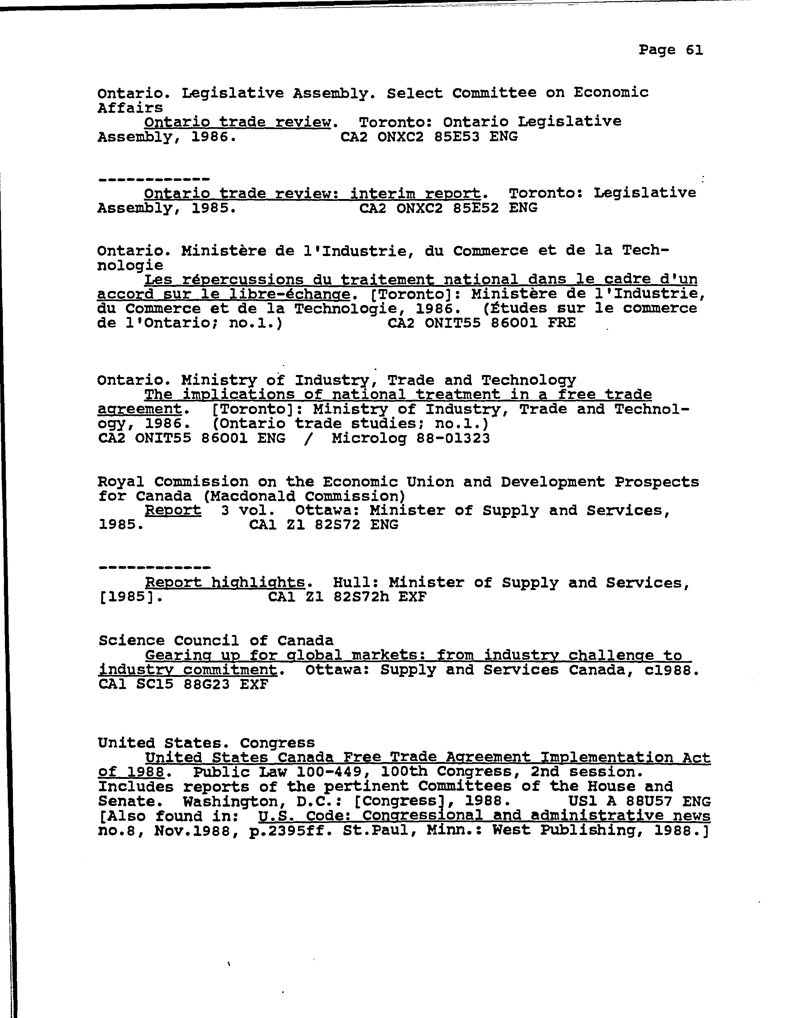 Canada-United States free trade : a bibliography / Libre-échange entre le Canada et les États-Unis : une bibliographie / par David Milne. - Published