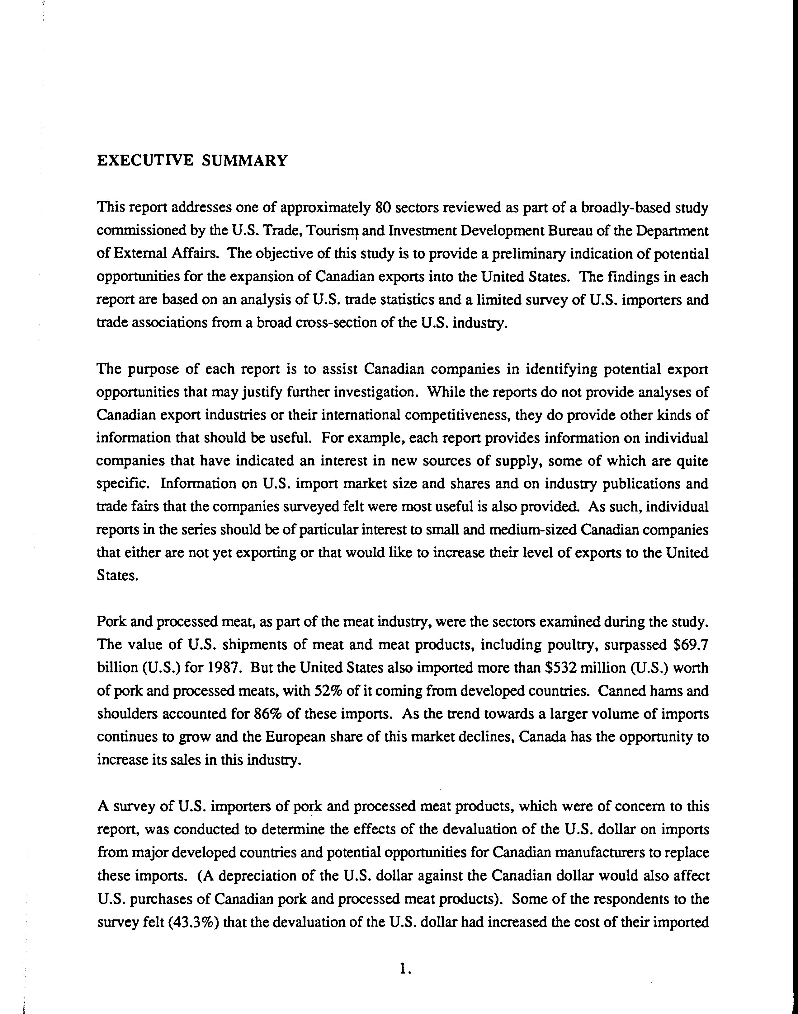 Titre de la page de titre additionnelle: Studies in Canadian export opportunities in the U.S. market : pork and processed meat.