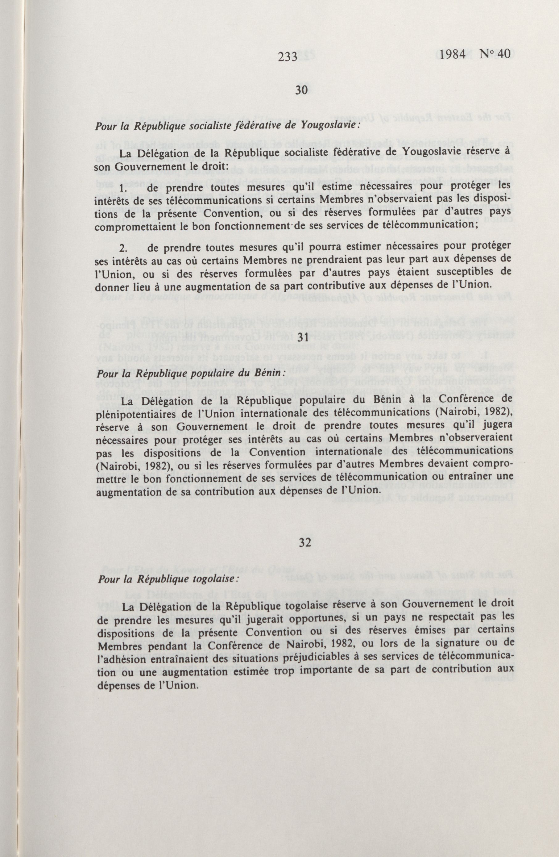 Télécommunications (ITU) : Convention internationale des télécommunications avec règlement général et annexes, et protocoles.