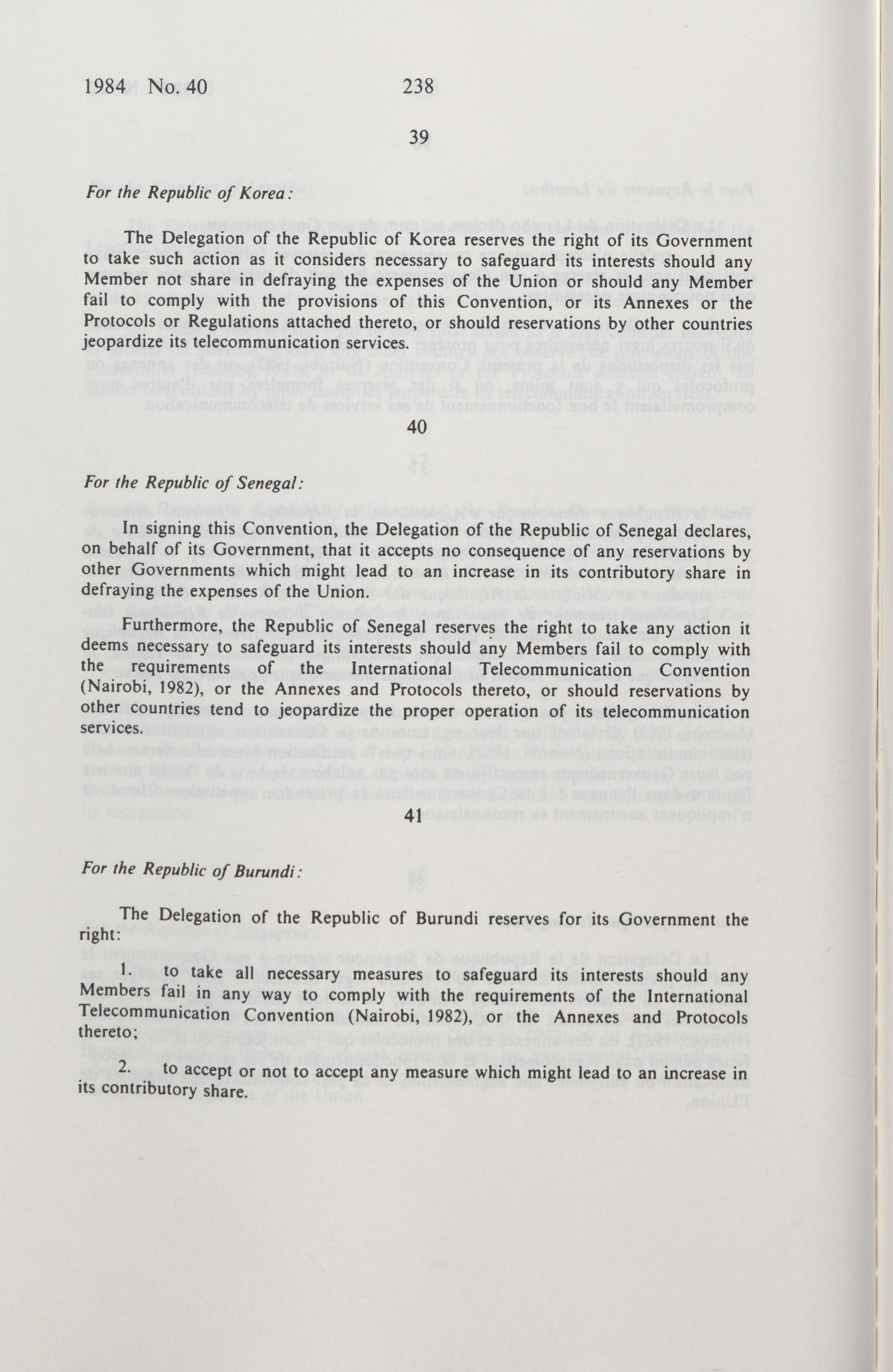 Télécommunications (ITU) : Convention internationale des télécommunications avec règlement général et annexes, et protocoles.