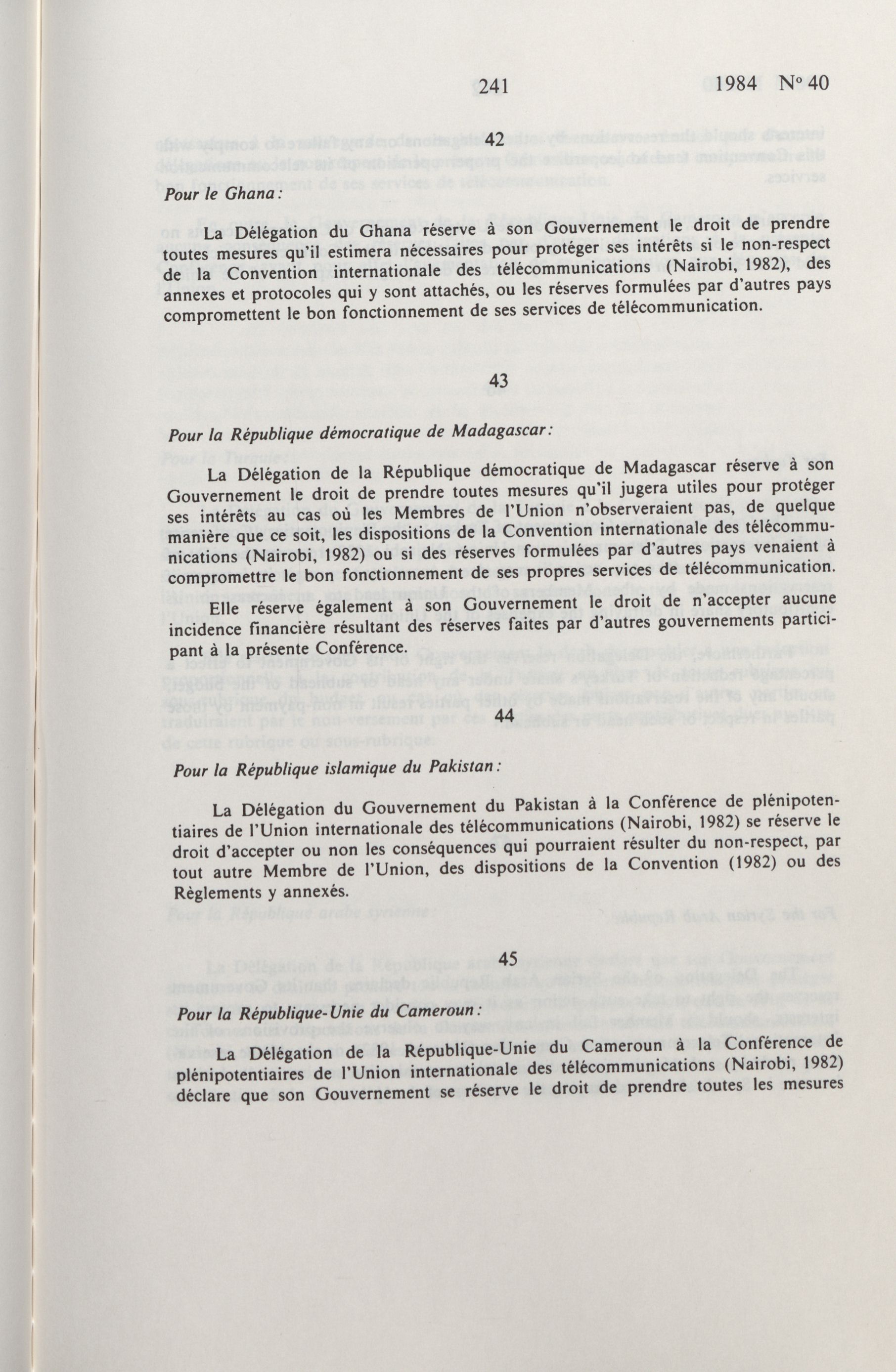 Télécommunications (ITU) : Convention internationale des télécommunications avec règlement général et annexes, et protocoles.