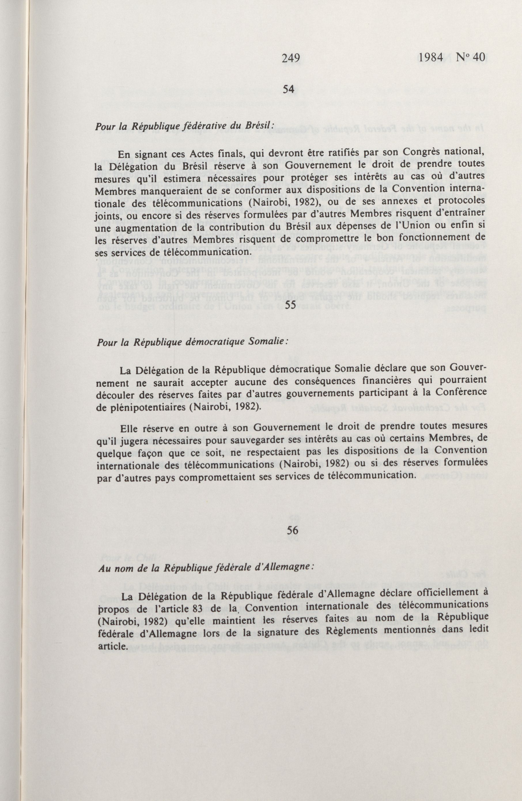 Télécommunications (ITU) : Convention internationale des télécommunications avec règlement général et annexes, et protocoles.