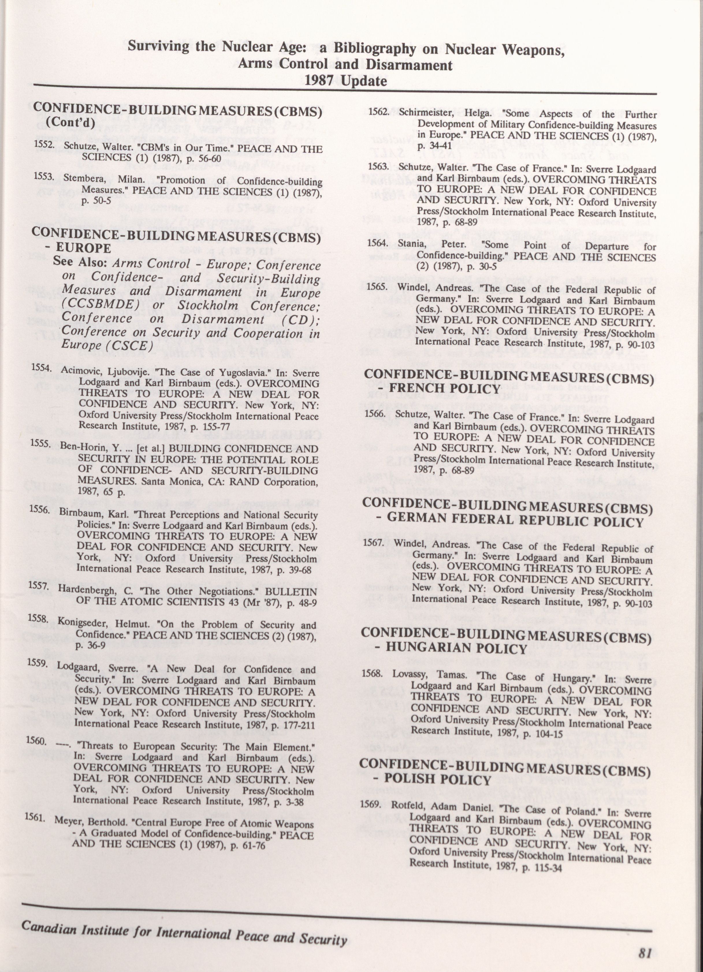 Ottawa : Canadian Institute for International Peace and Security, 1990.