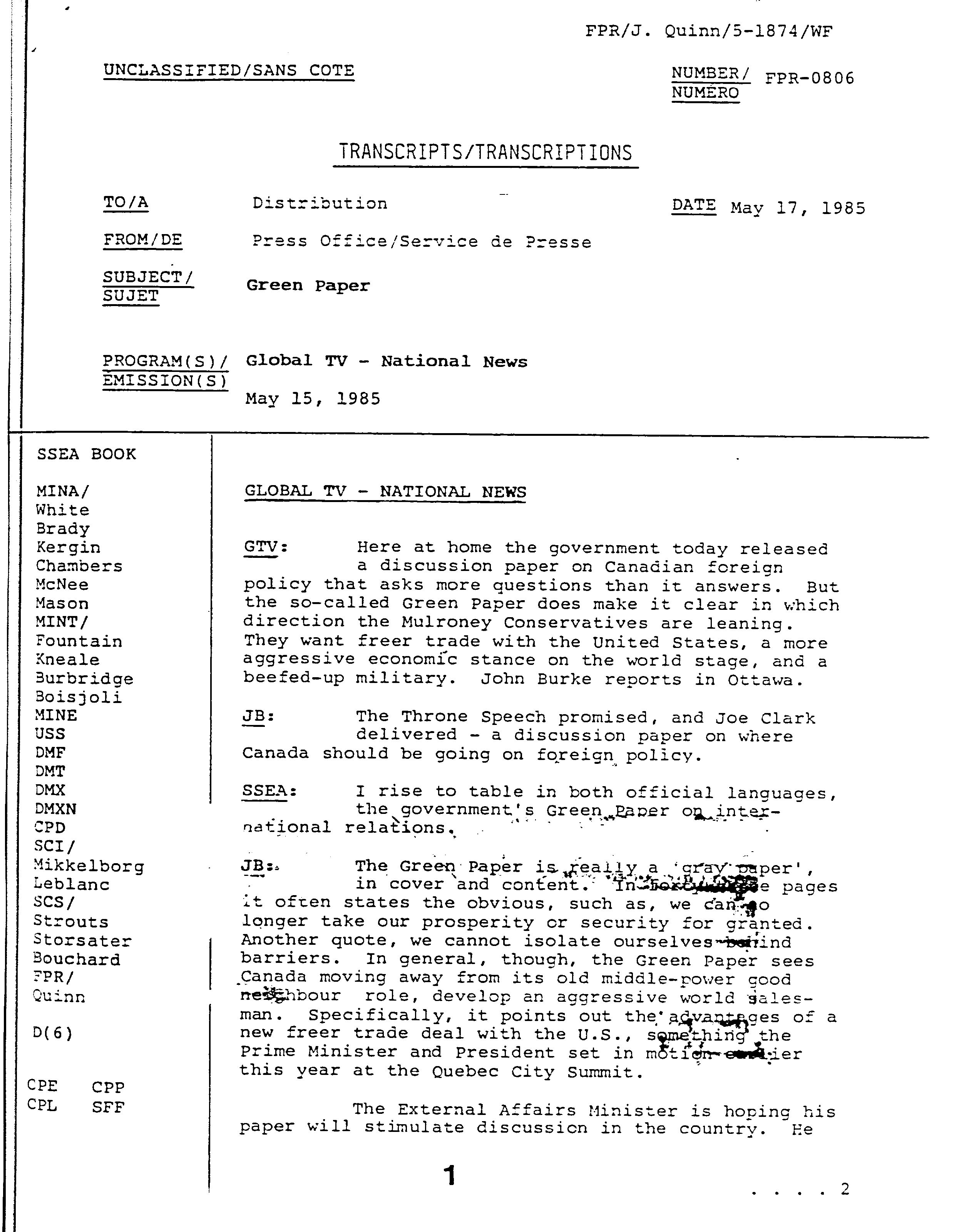 Media coverage of the Green Paper = La couverture par les médias du Livre vert / kit prepared by SCS.