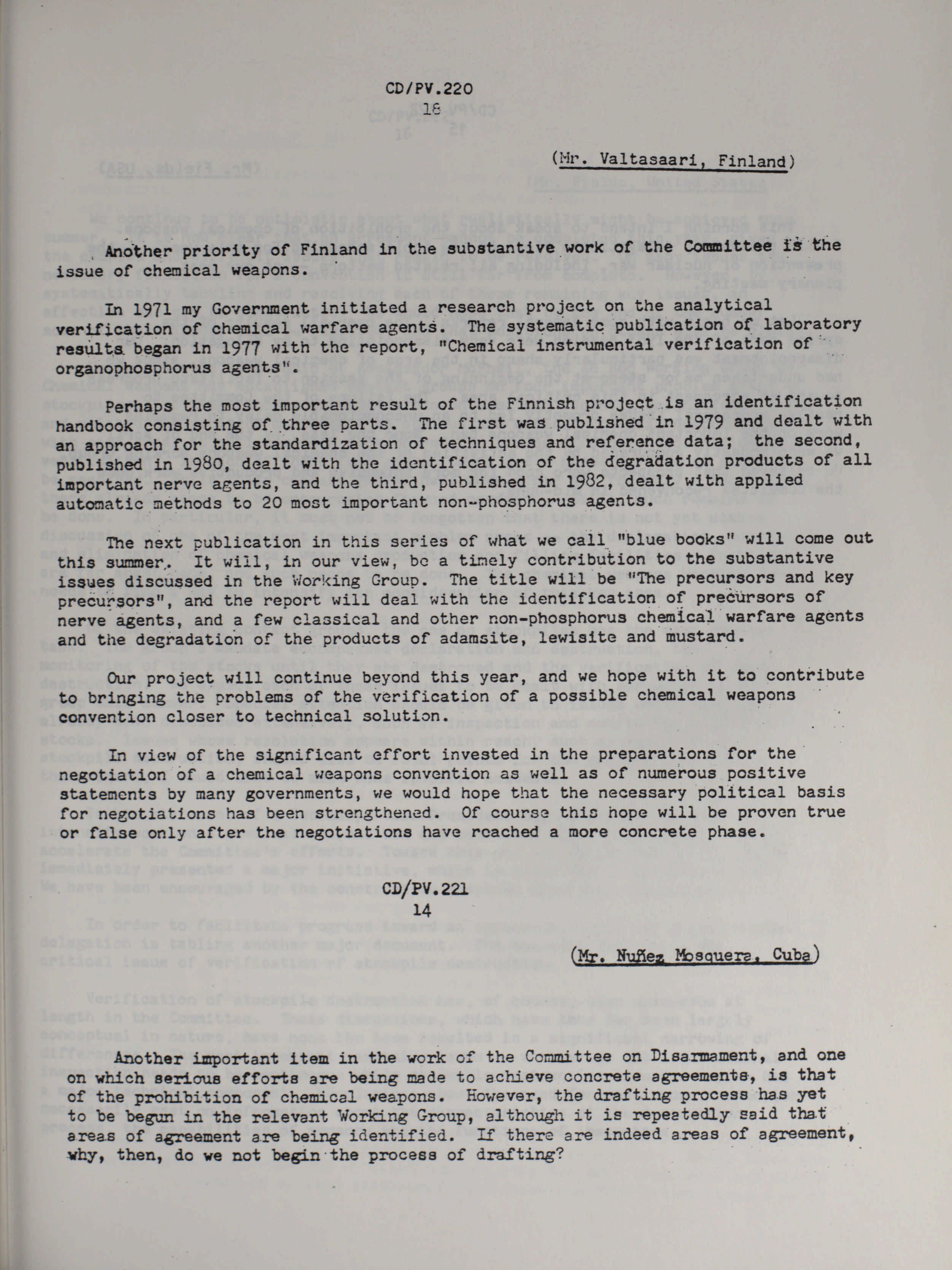 Chemical weapons -- final records (PV) : ... session / compiled and edited by Arms Control and Disarmament Division of the Department of External Affairs.