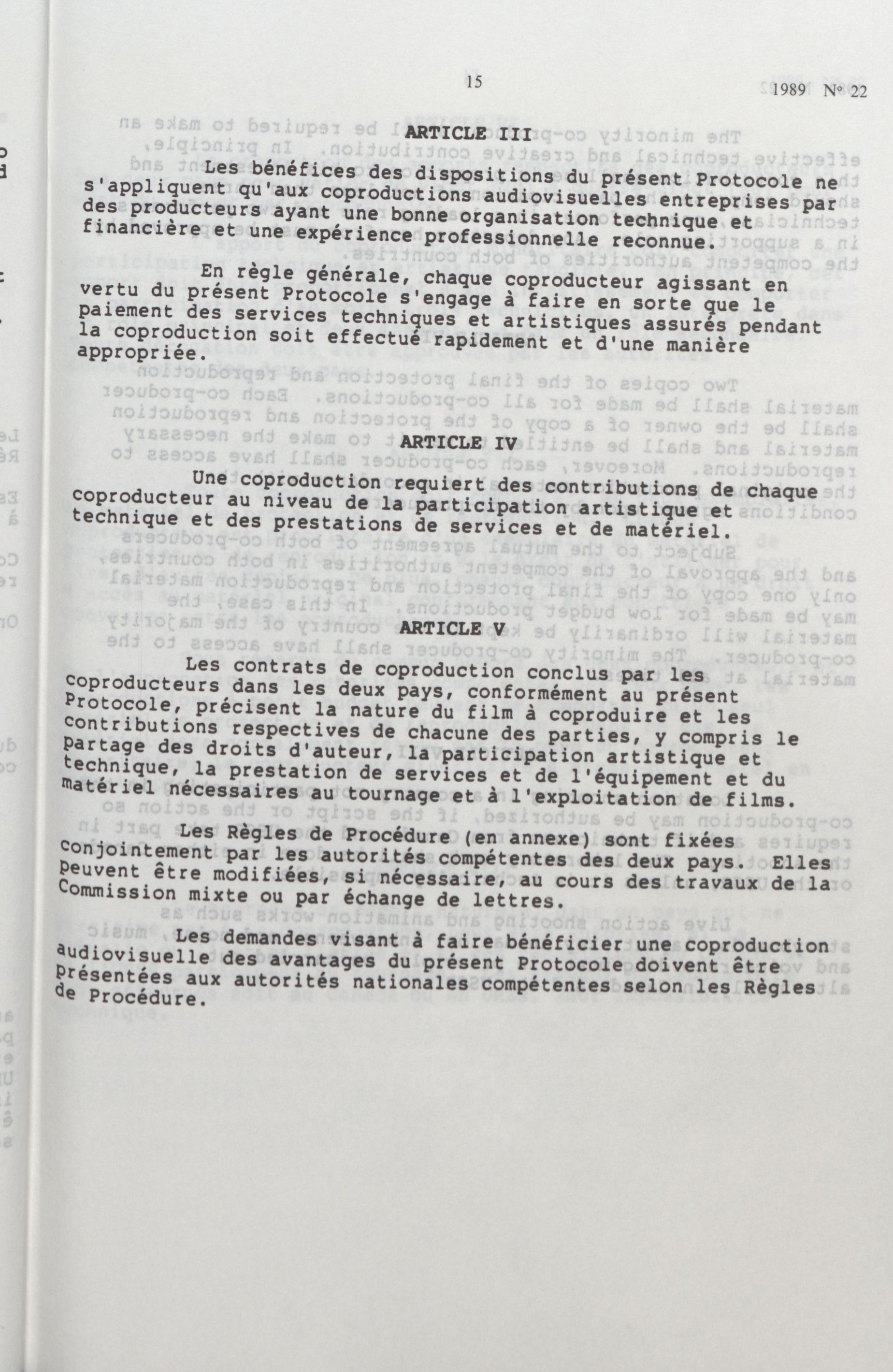 Culture : agreement between the government of Canada and the government of the Union of Soviet Socialist Republics concerning audio-visual relations (with protocol) = Culture : accord entre le gouvernement du Canada et le gouvernement de l'Union des Républiques socialistes soviétiques concernant les relations dans le domaine de l'audiovisuel (avec protocol).