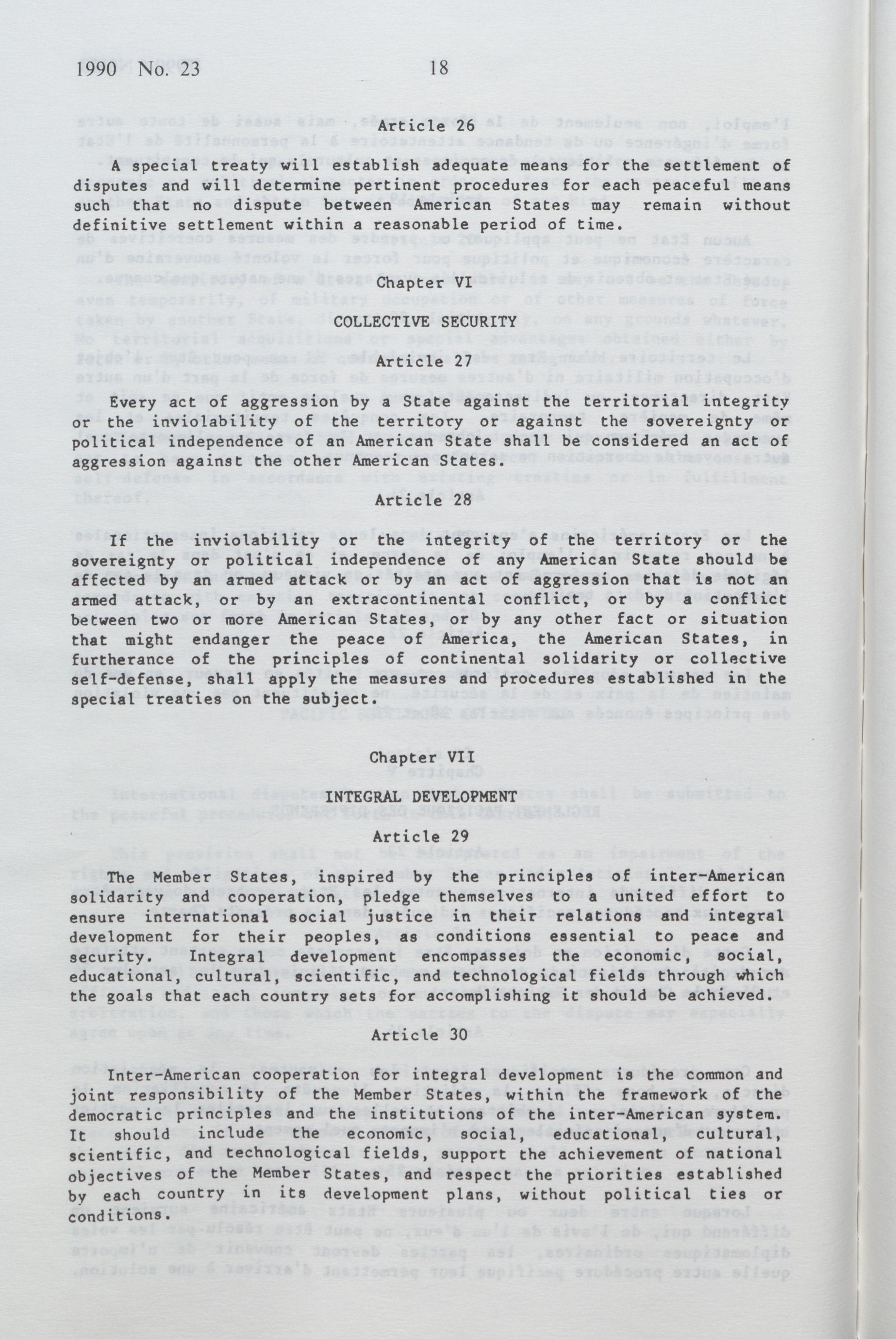 Bogota, le 30 avril 1948; signée par le Canada le 13 novembre 1989; ratifiée par le Canada le 8 janvier 1990; en vigueur pour le Canada le 8 janvier 1990.