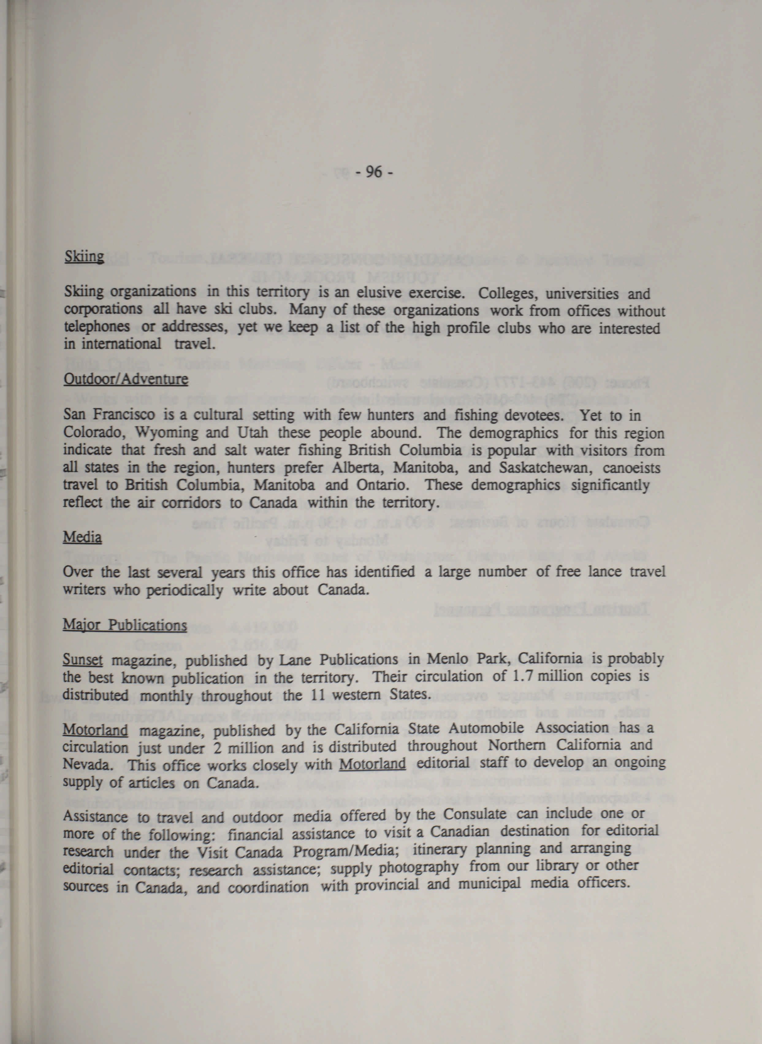 Tourism market profiles - US and overseas : : 1991