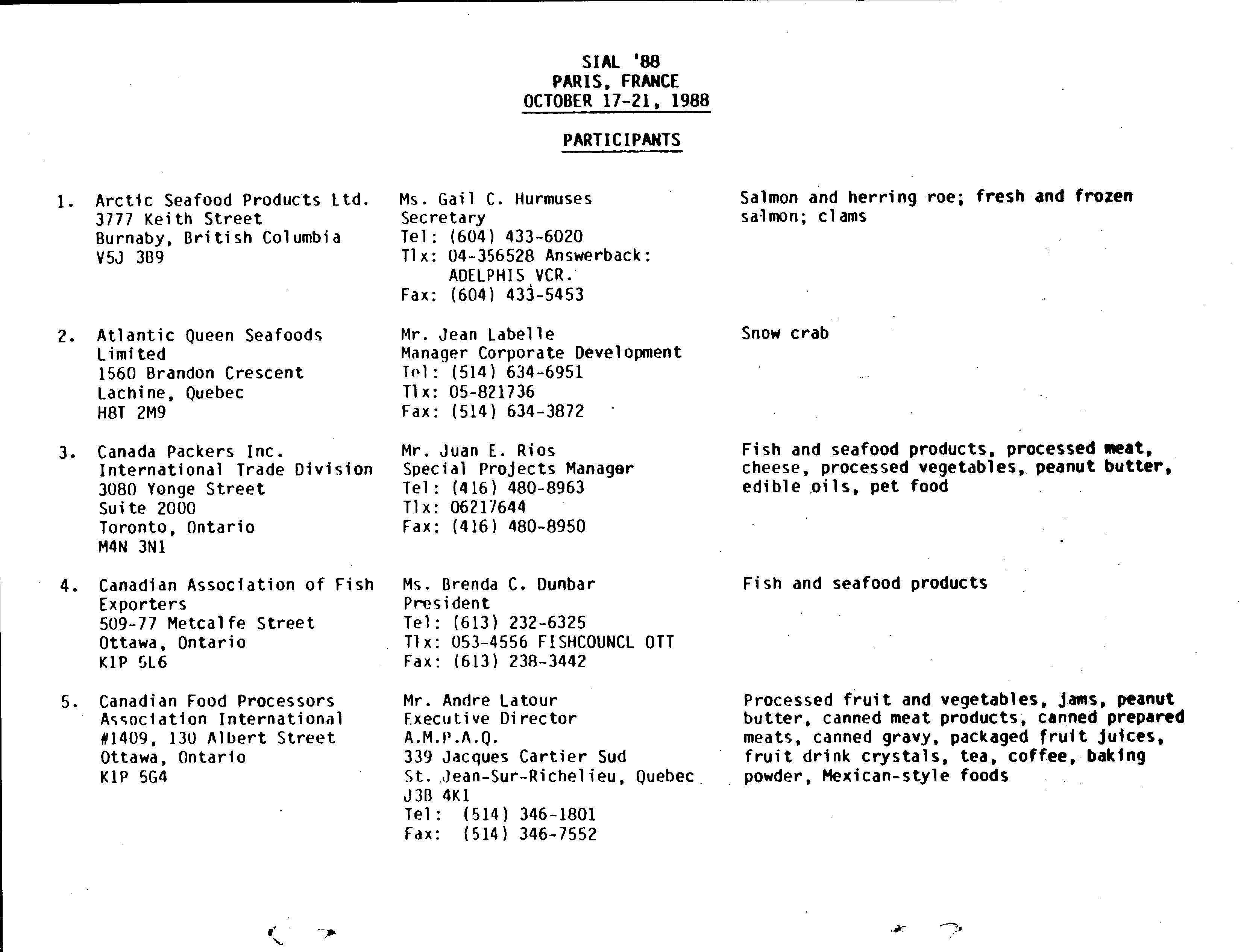 Report on SIAL '88 (Salon international de l'alimentation) - Adresse bibliographique