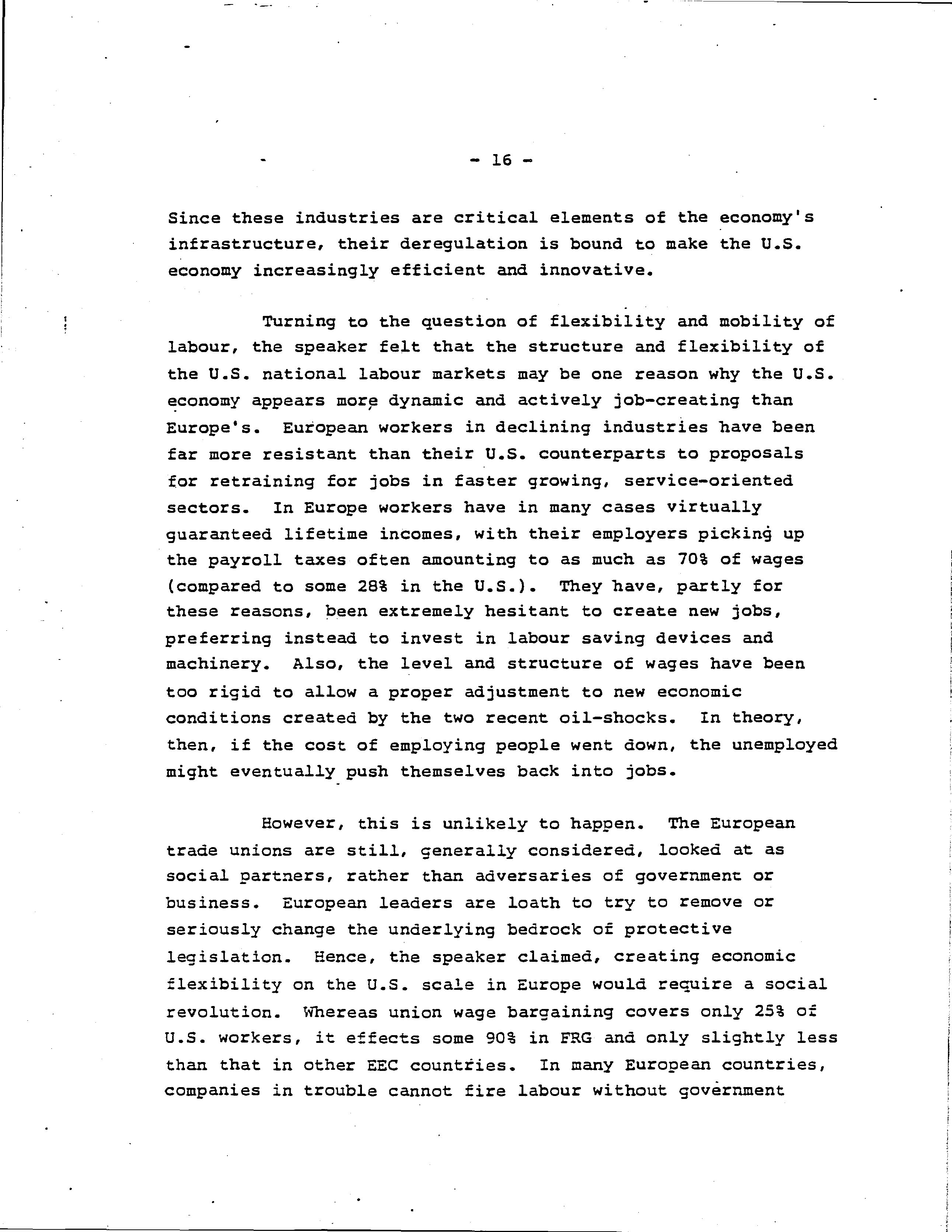 Technology, job creation and unemployment contrasts of U.S. and European experience /