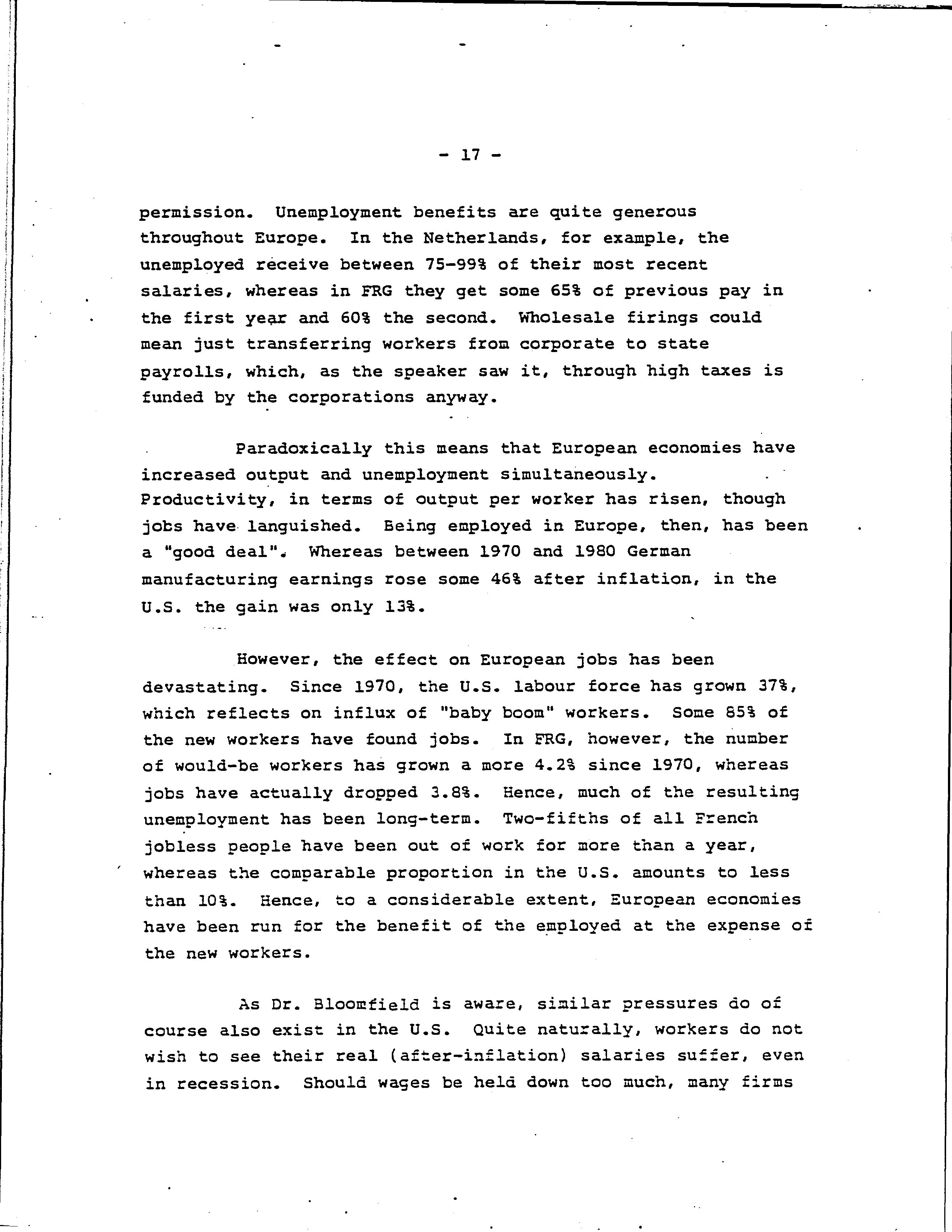Technology, job creation and unemployment contrasts of U.S. and European experience /