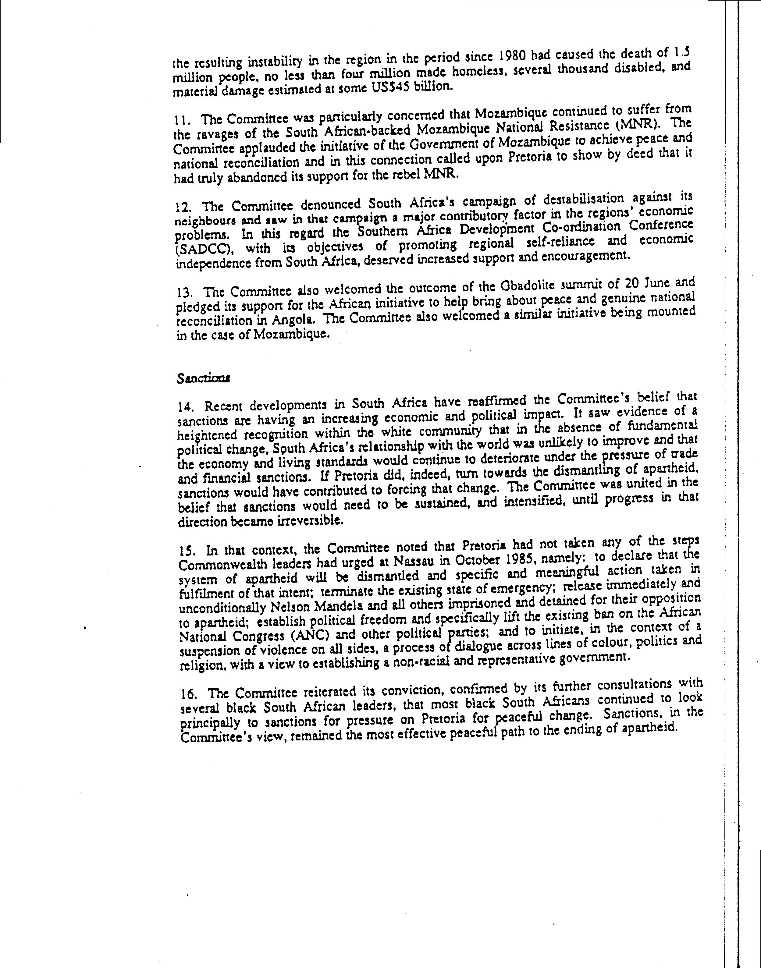 Documents du Commonwealth et autres sur l'Afrique du Sud.
