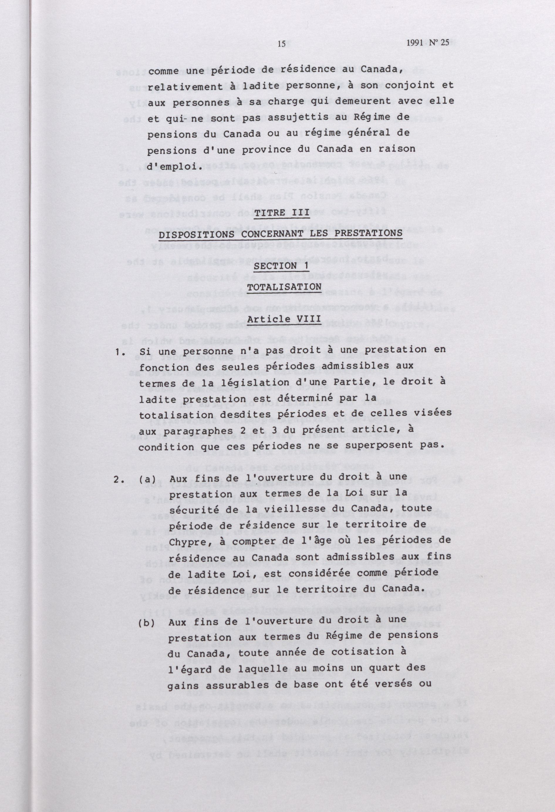 Social security : agreement on social security between the government of Canada and the government of the Republic of Cyprus =