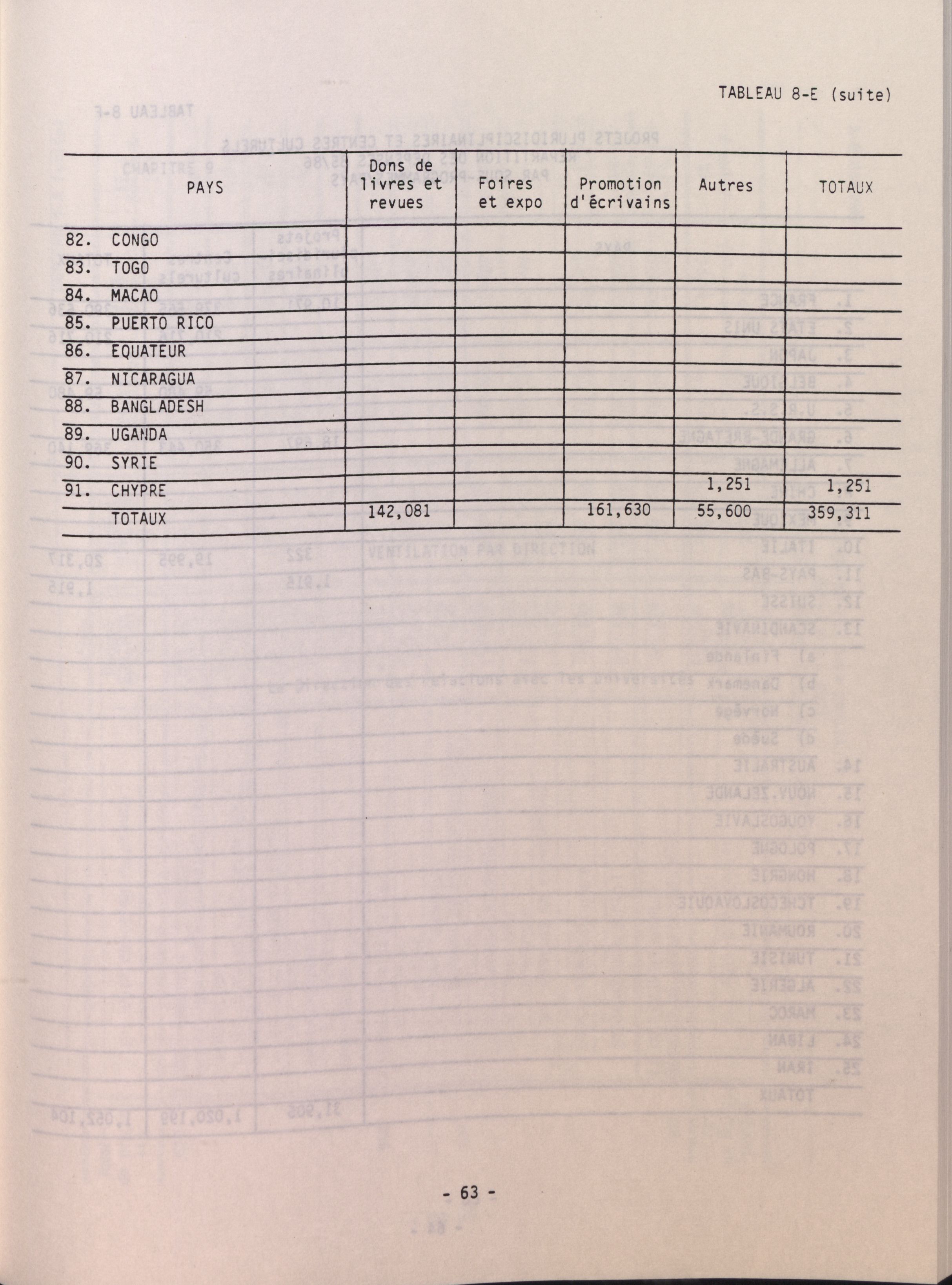 Relations culturelles internationales : bilan "chiffré" des activités ... / Ministère des affaires extérieures Canada. -- : 1985/86