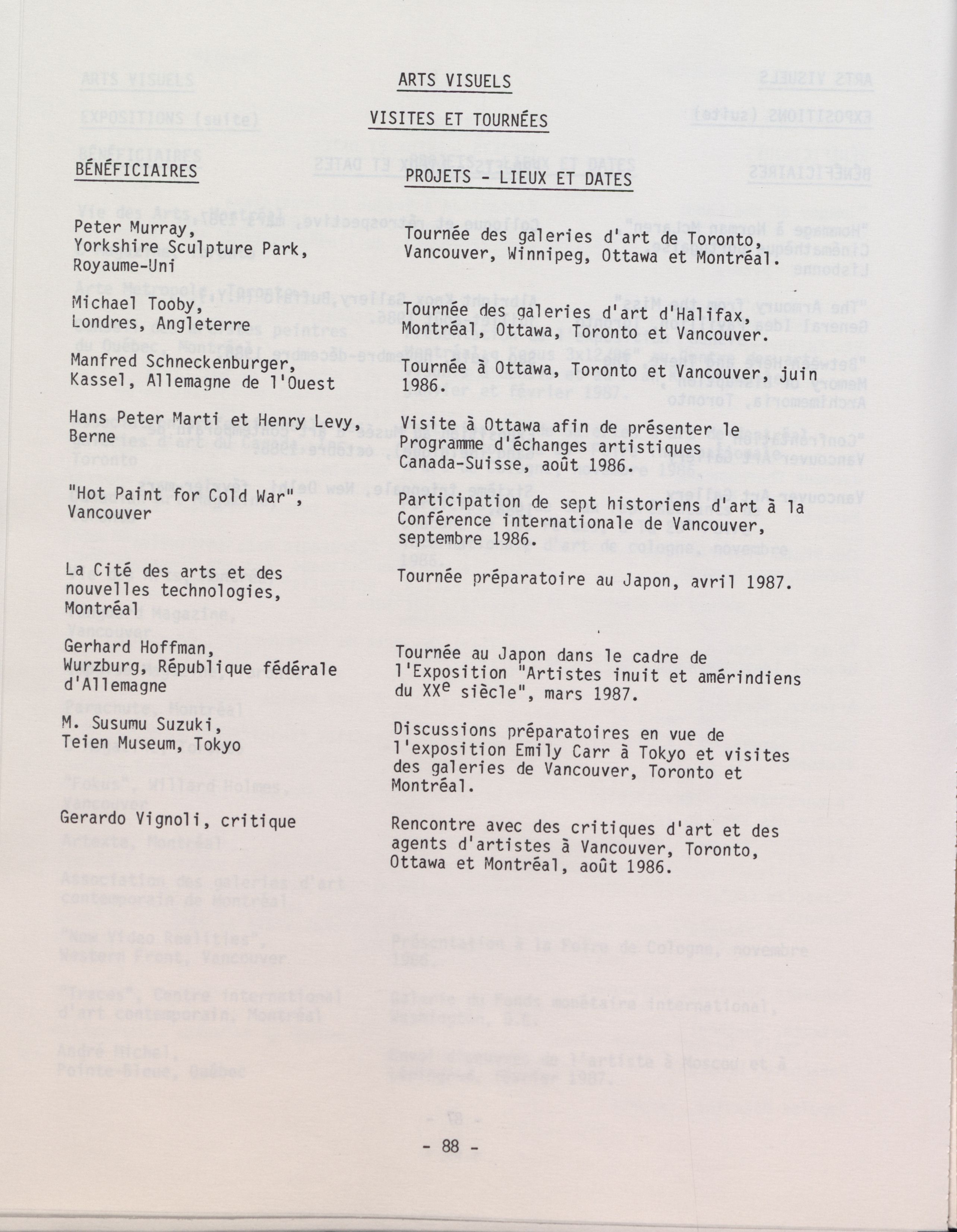 Relations culturelles internationales : bilan "chiffré" des activités ... / Ministère des affaires extérieures Canada. -- : 1986/87