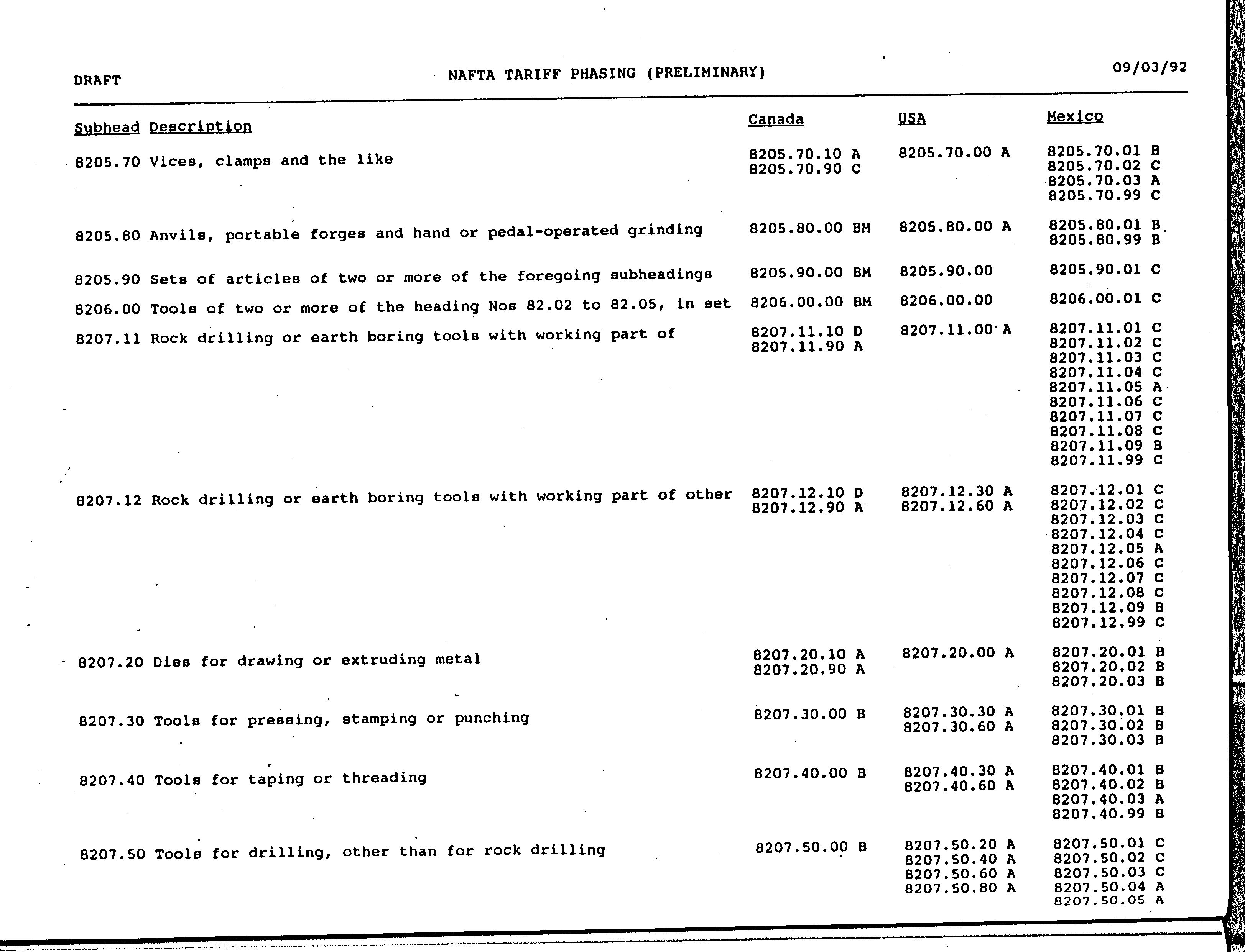 North American Free Trade Agreement : draft tariff phasing schedule, September 8, 1992 - Published