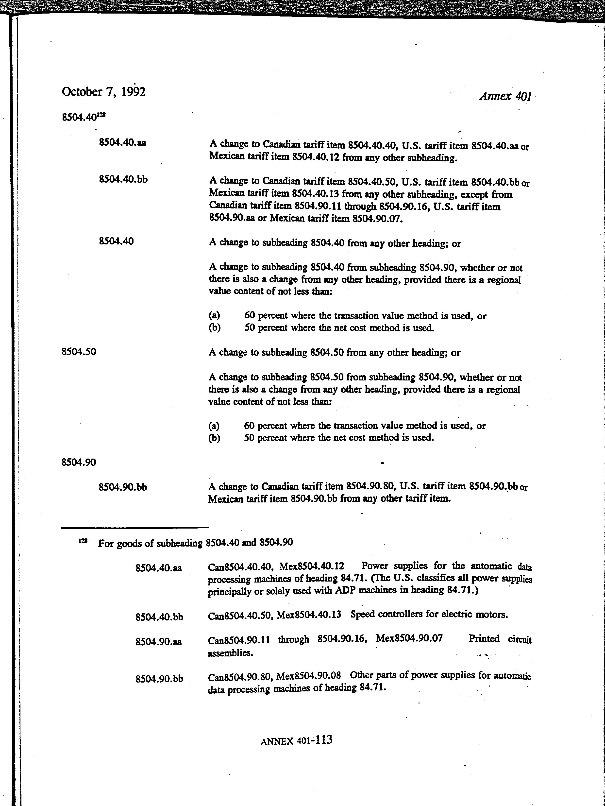 North American Free Trade Agreement ... October 7, 1992 / External Affairs and International Trade Canada. Part II (Oct. 7, 1992)