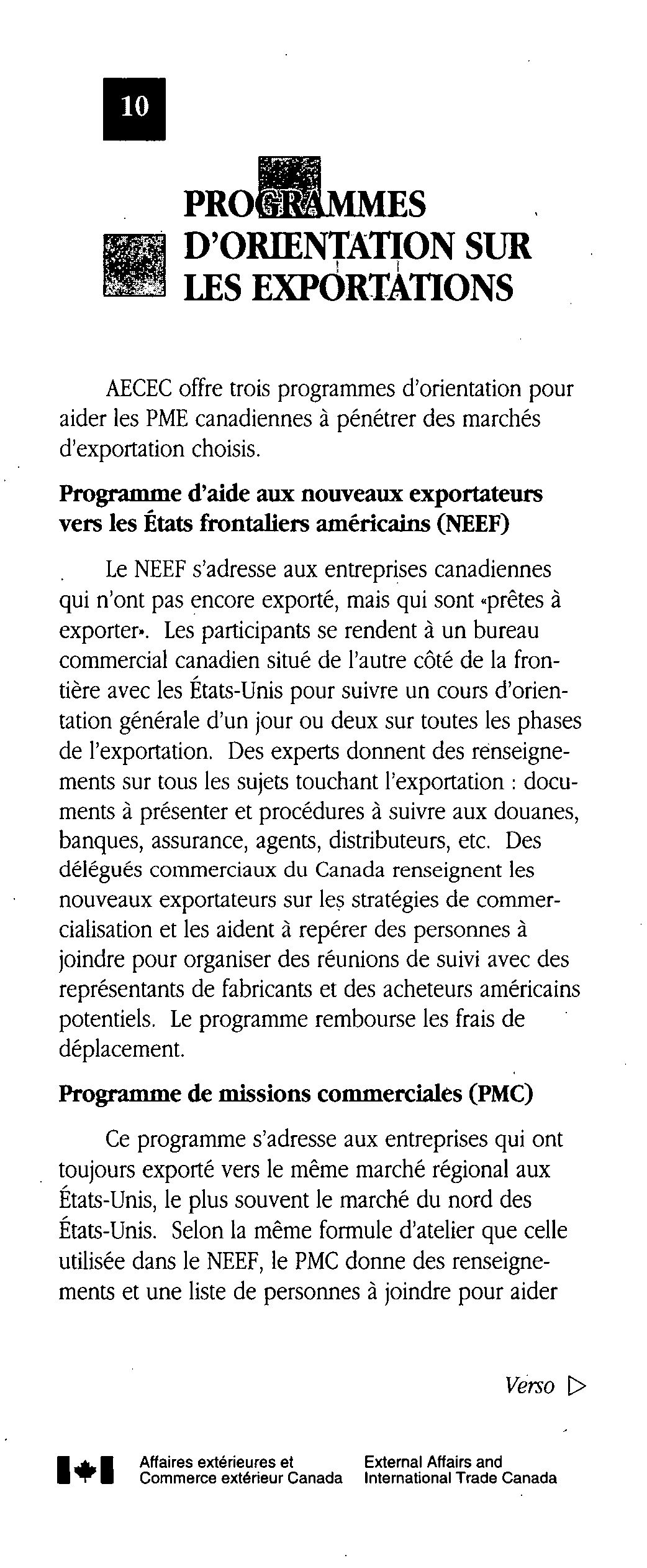 Programmes et services à l'expansion des exportations /