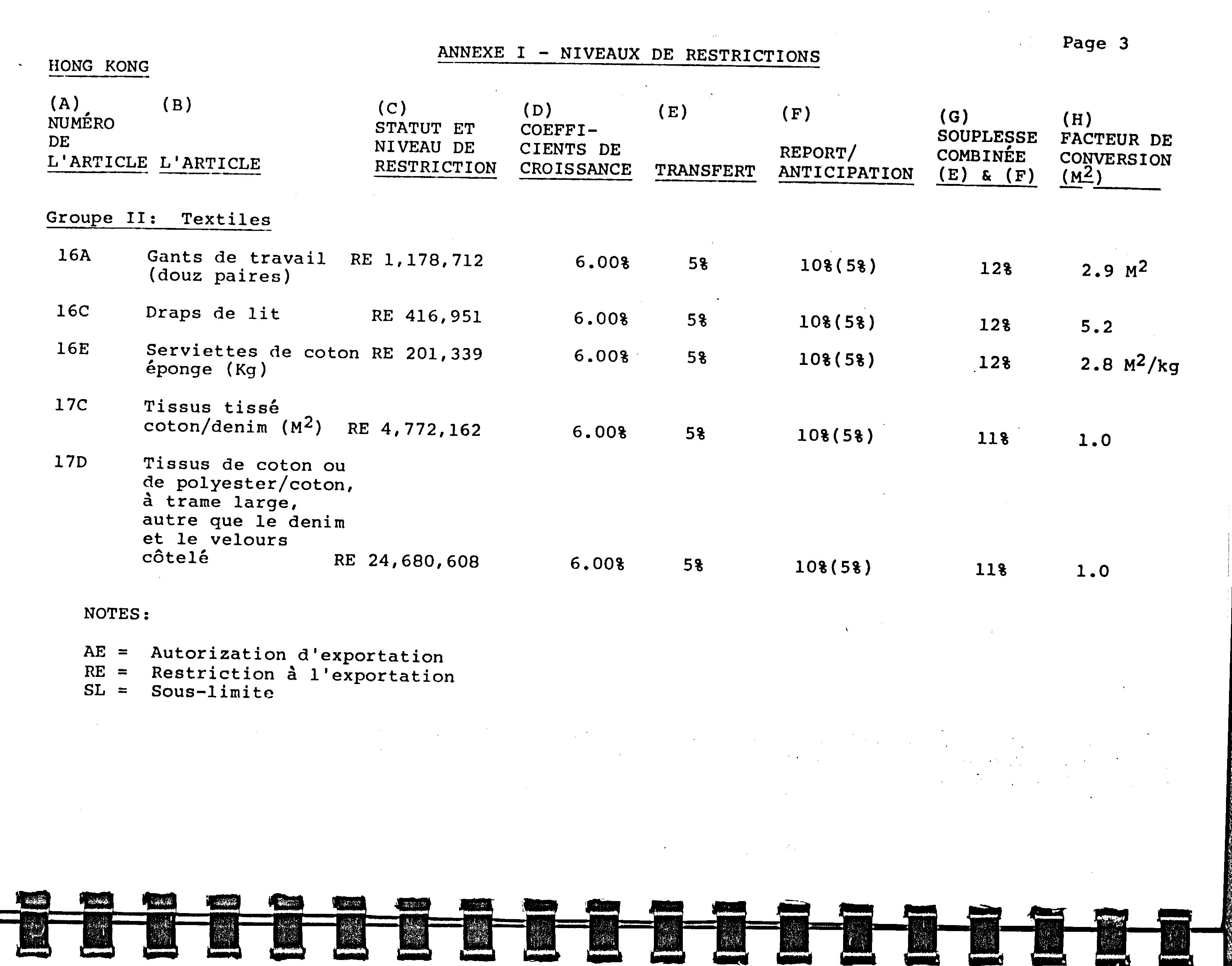 Sommaire des ententes bilatérales du Canada prévoyant des restrictions sur les importations : textiles et vêtements.