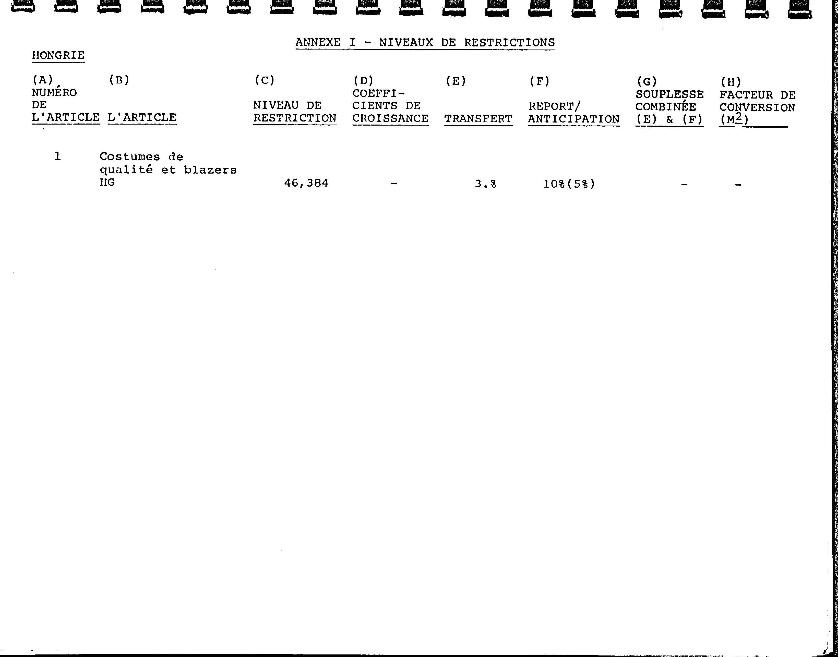 Sommaire des ententes bilatérales du Canada prévoyant des restrictions sur les importations : textiles et vêtements.