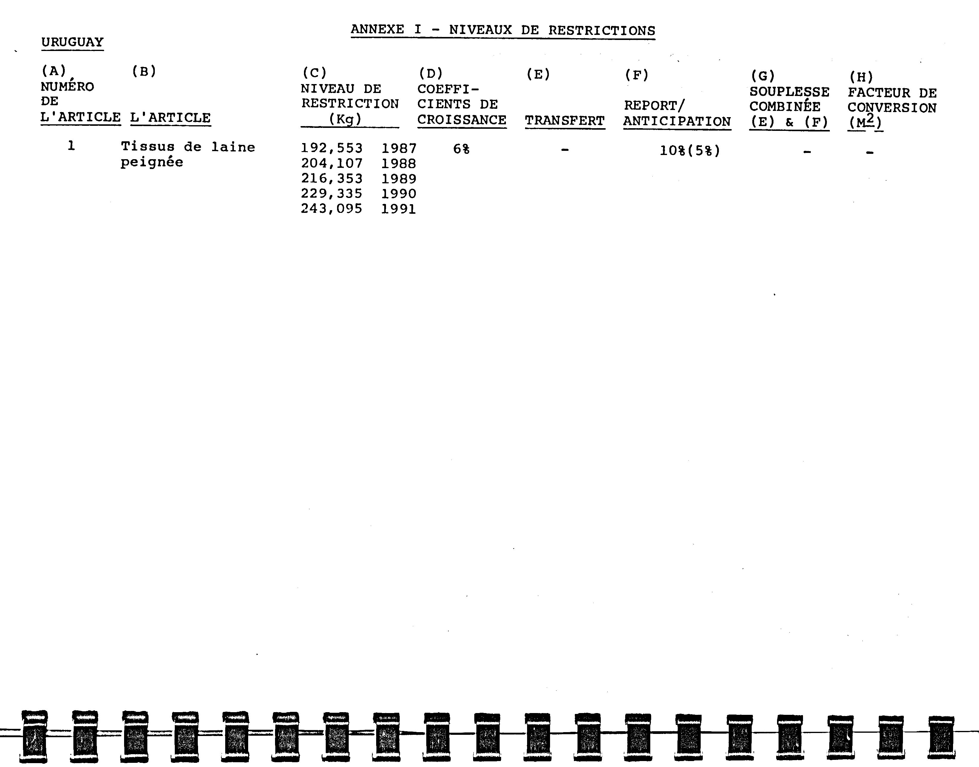 Sommaire des ententes bilatérales du Canada prévoyant des restrictions sur les importations : textiles et vêtements.