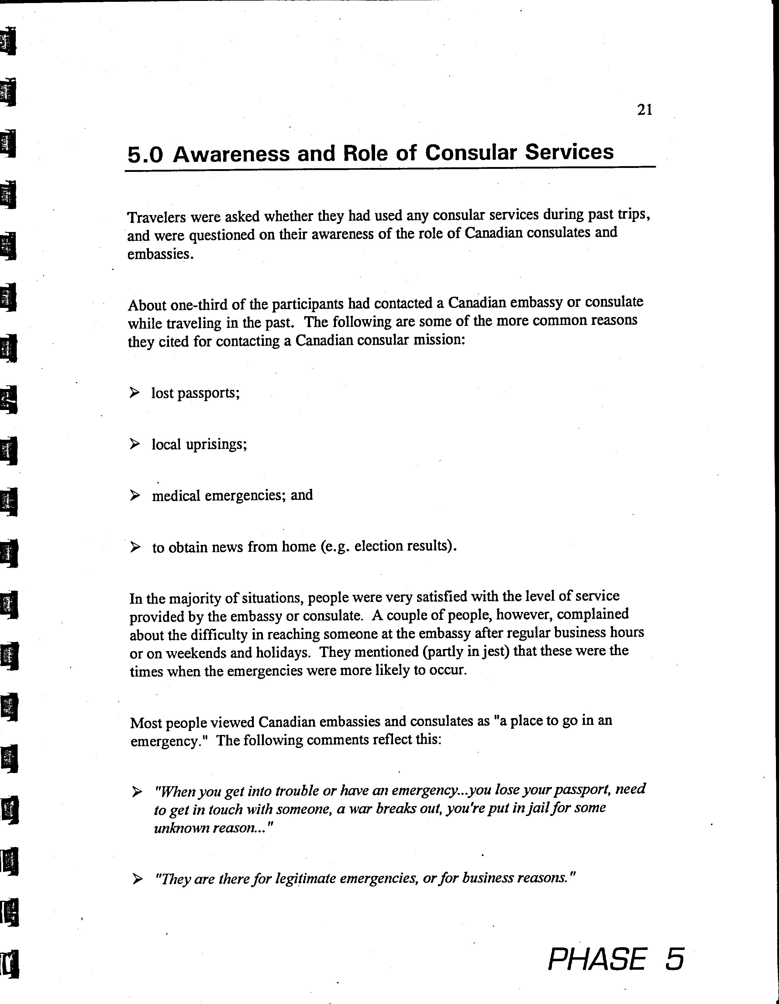Qualitative research on materials for the Consular Awareness Program : final report January 24, 1994.