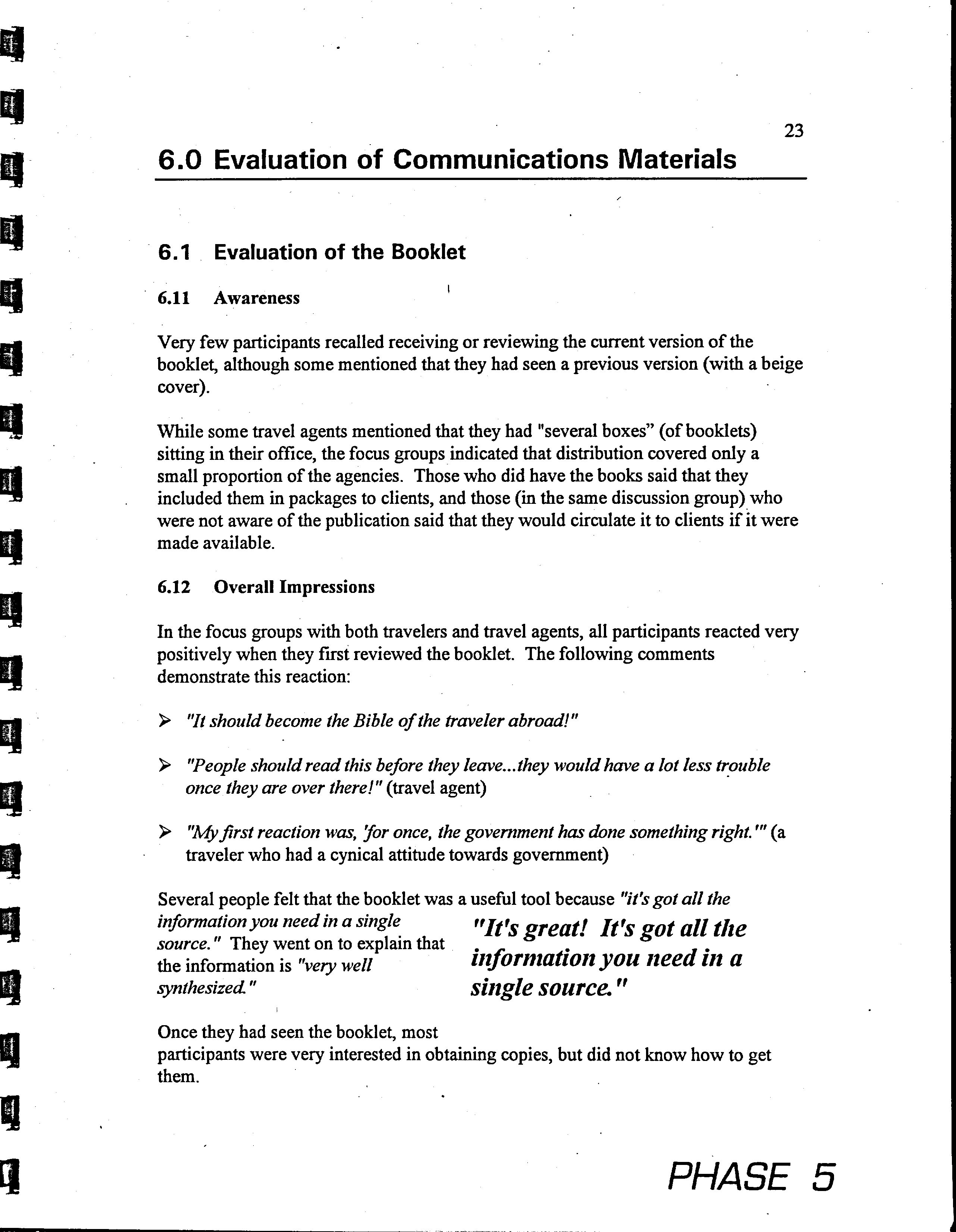 Qualitative research on materials for the Consular Awareness Program : final report January 24, 1994.