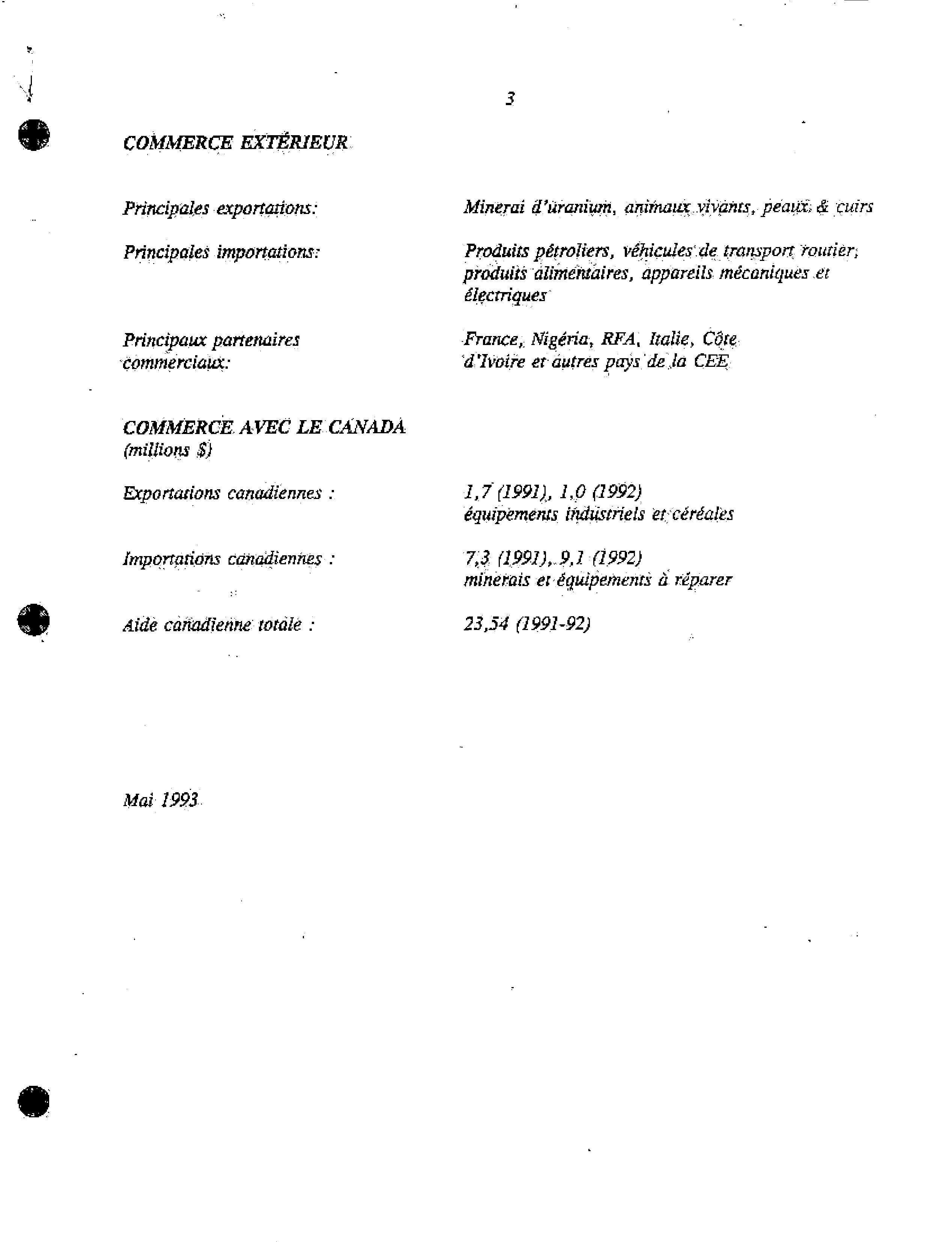 Visite de l'Honorable Monique Vézina Ministre des relations extérieures et du développement international et Ministre d'État pour le troisième âge au Bénin, Ghana, Niger, Mali et en France : mai 1993.