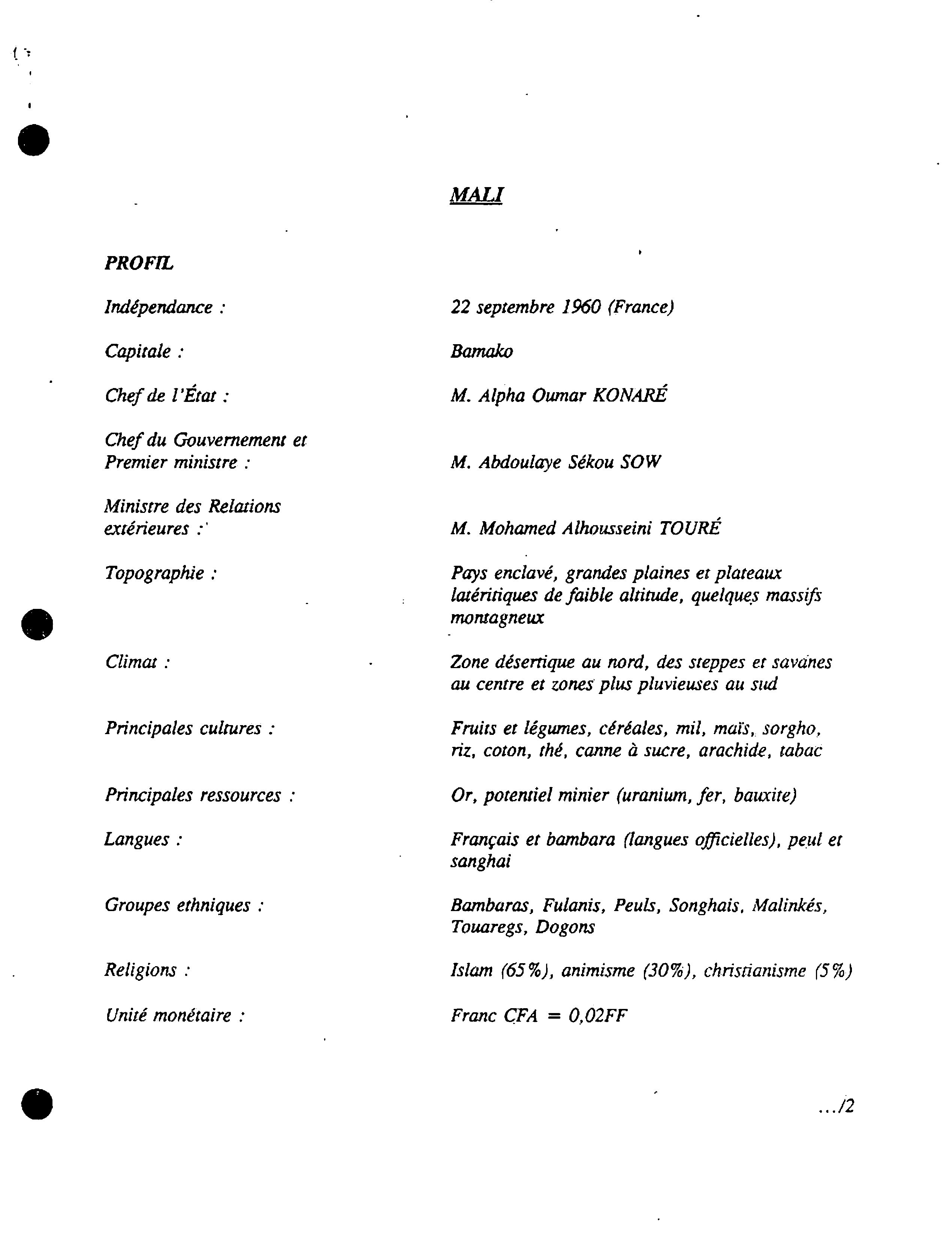 - Visite de l'Honorable Monique Vézina Ministre des relations extérieures et du développement international et Ministre d'État pour le troisième âge au Bénin, Ghana, Niger, Mali et en France : mai 1993.