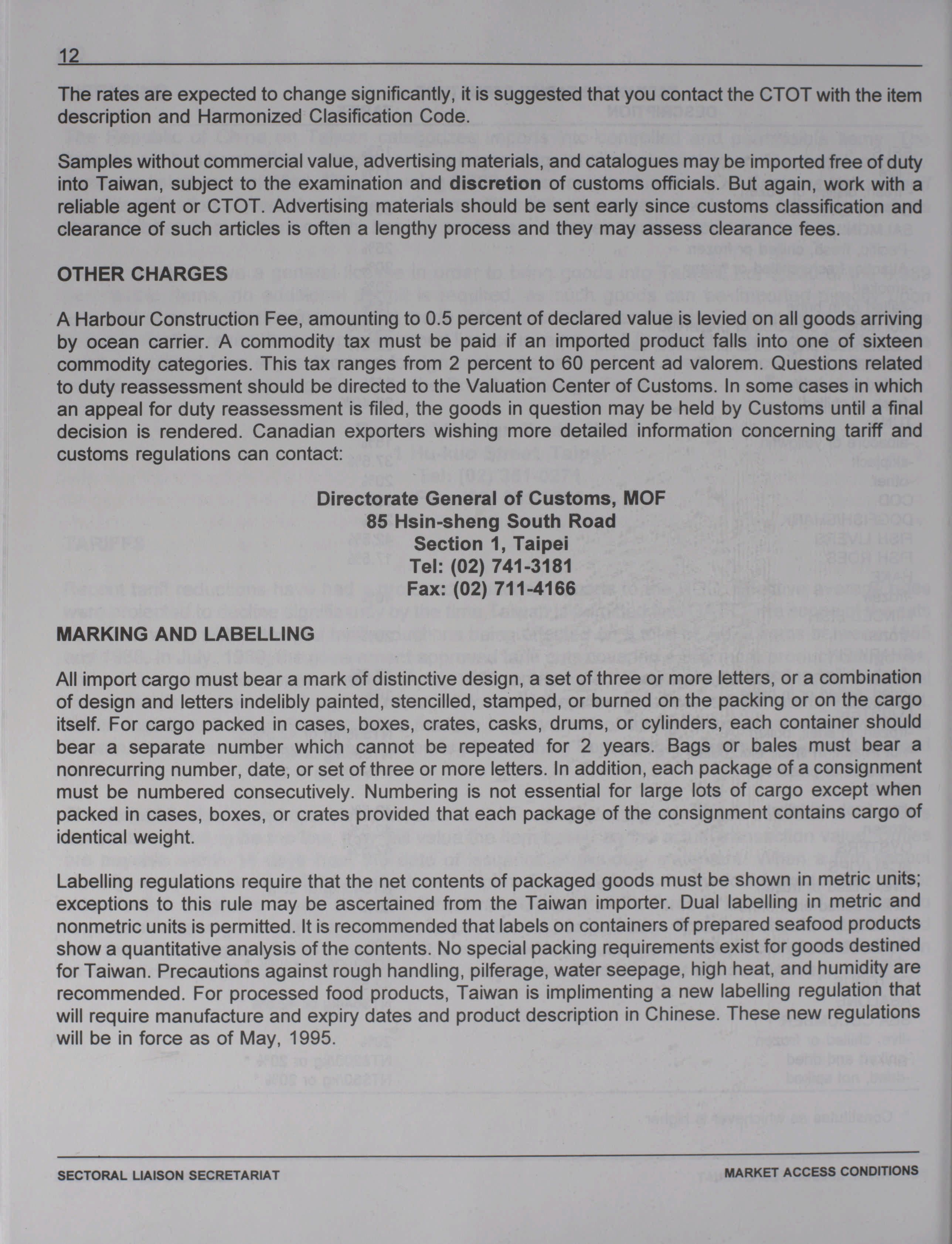Taïwan : lignes directrices à l'intention des exportateurs canadiens de poissons et de fruits de mer / : 1995