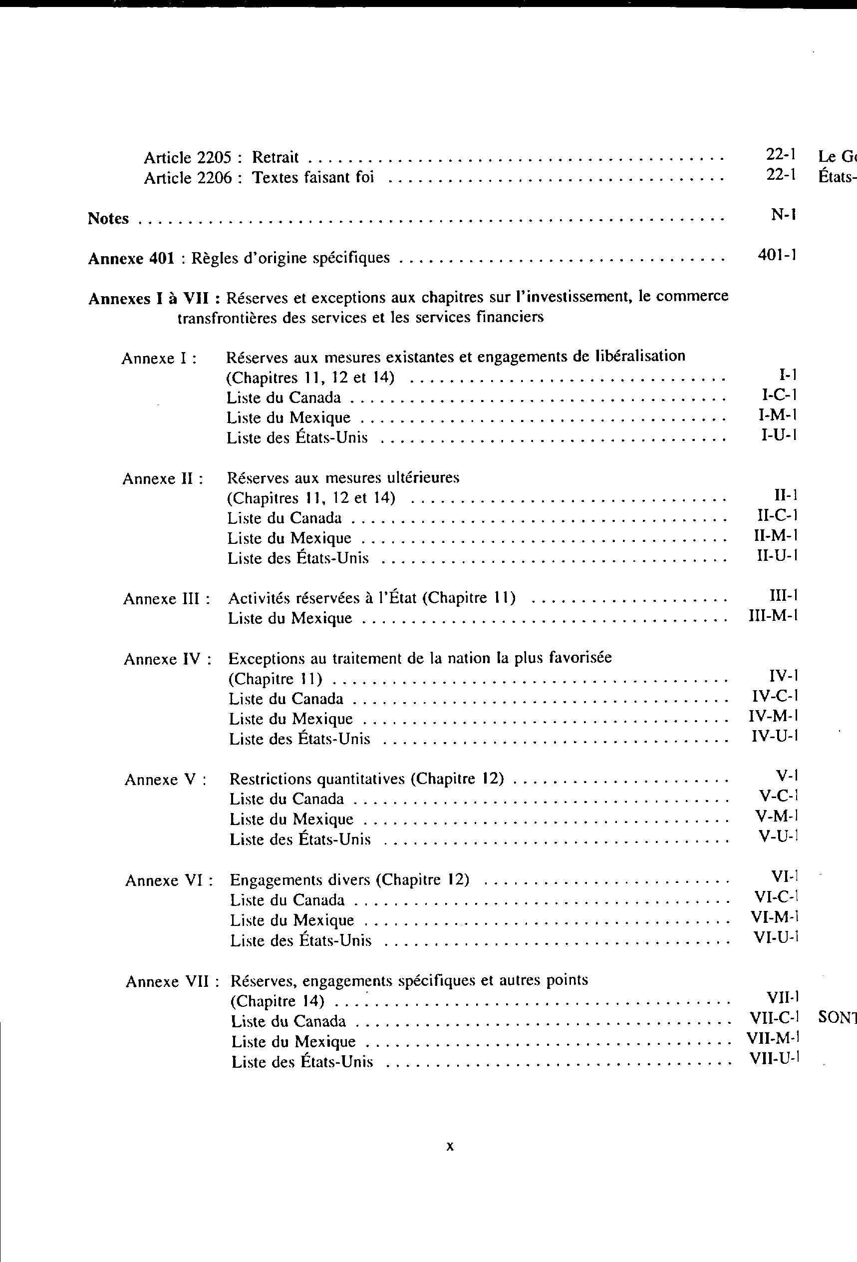 Accord de libre-échange nord-américain entre le Gouvernement du Canada, le Gouvernement des États-Unis d'Amérique et le Gouvernement des États-Unis du Mexique.