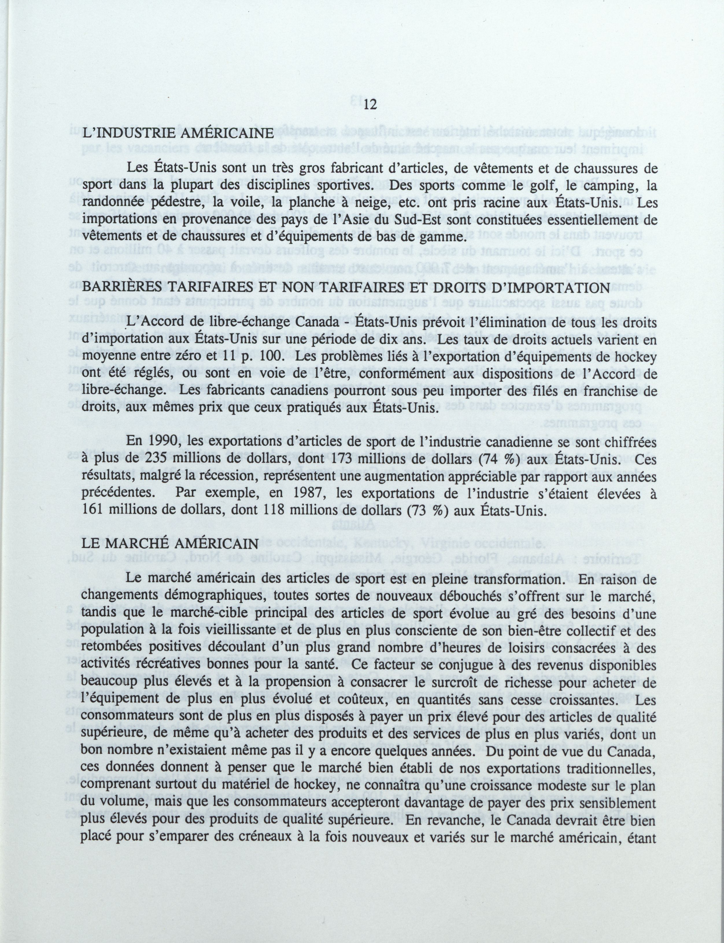 Provisoire examen des débouchés mondiaux pour l'industrie canadienne des articles de sport. --