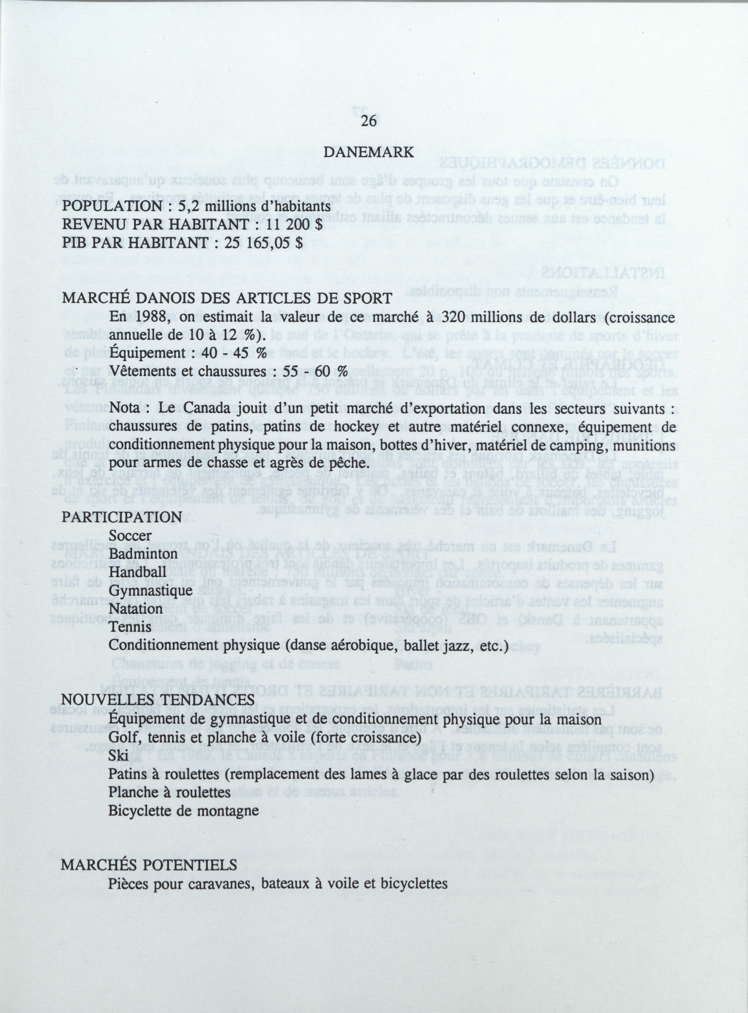 Provisoire examen des débouchés mondiaux pour l'industrie canadienne des articles de sport. --