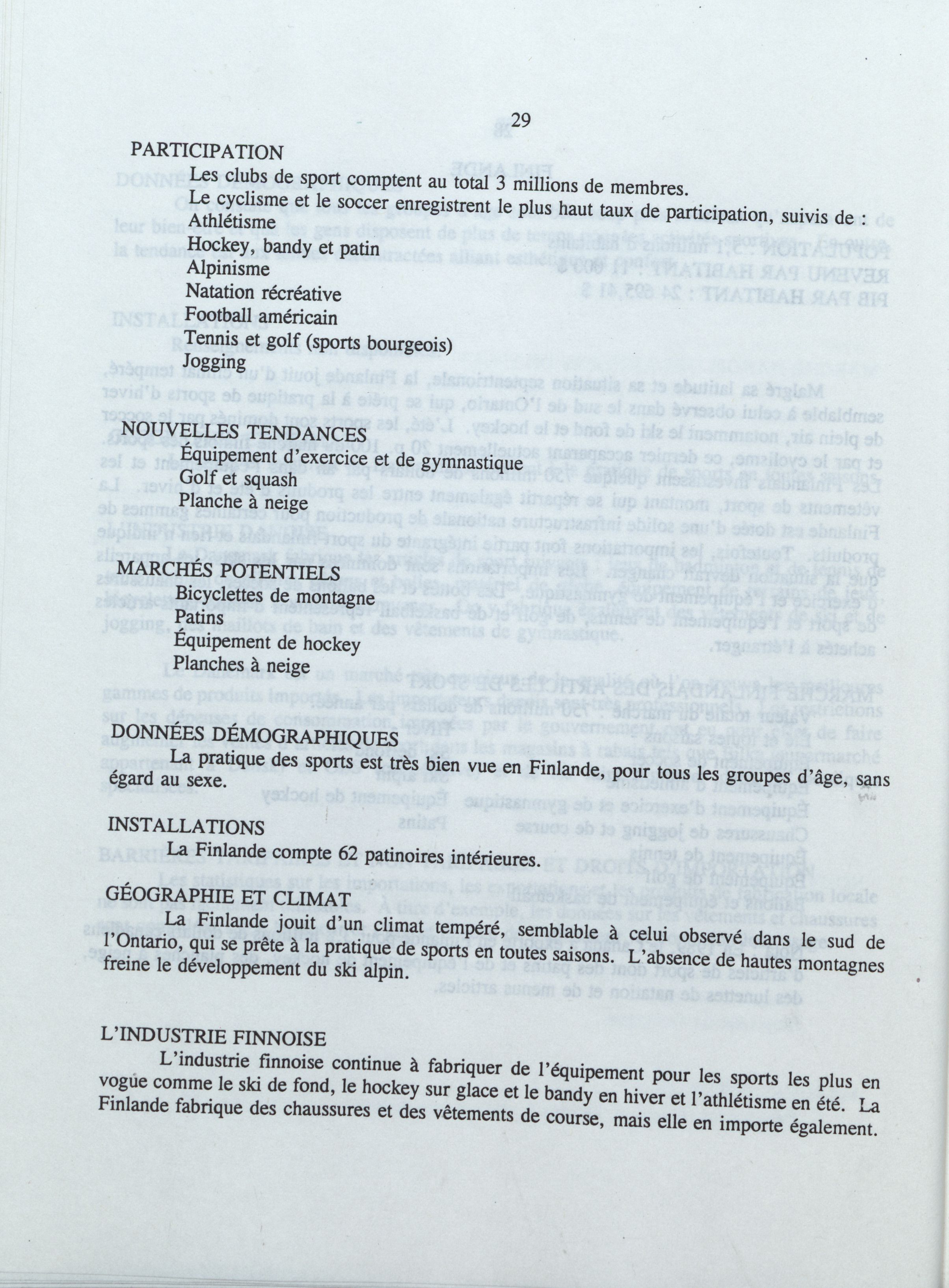 Provisoire examen des débouchés mondiaux pour l'industrie canadienne des articles de sport. --