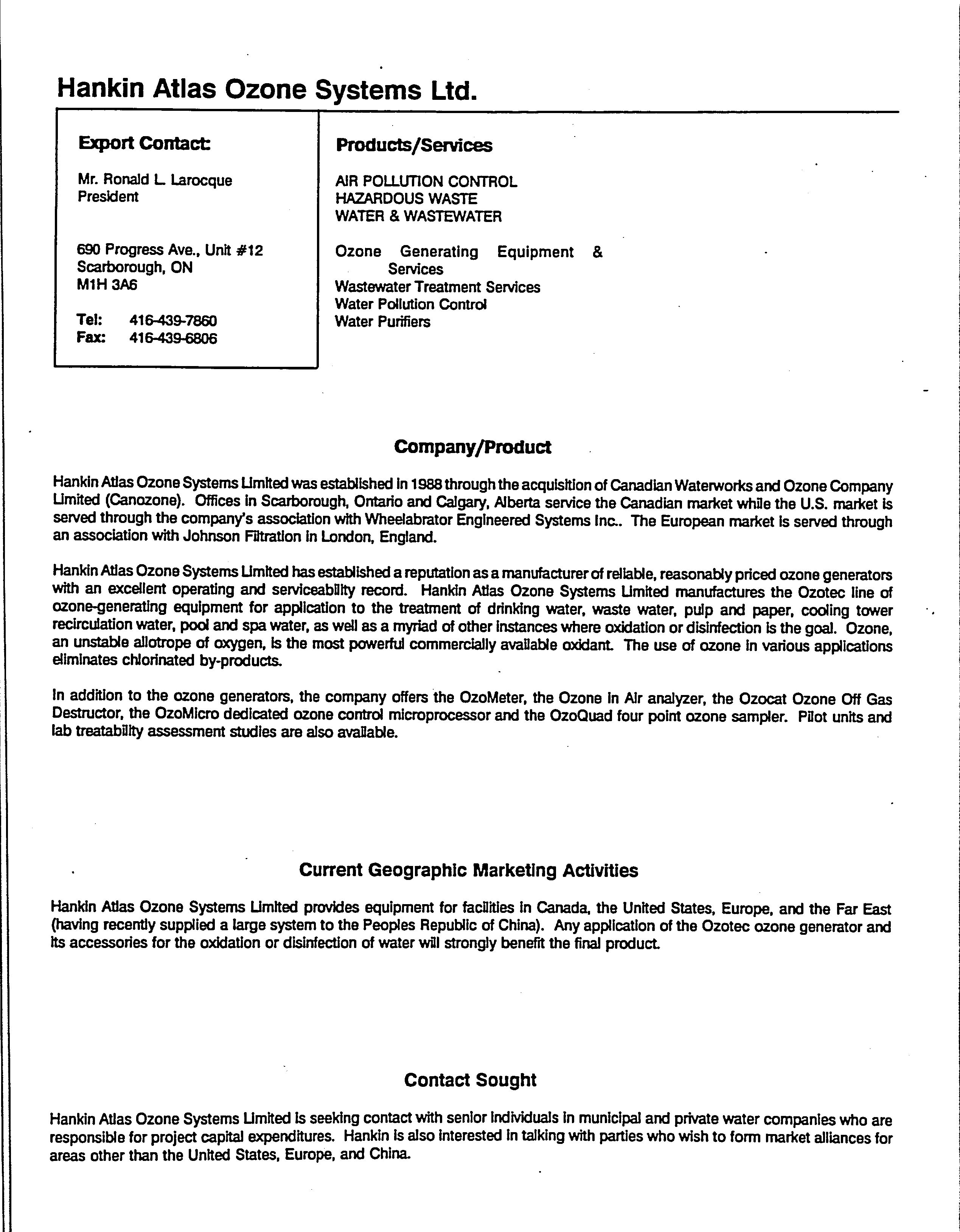 Canadian exporters of environmental products & services in the air pollution control sector. --